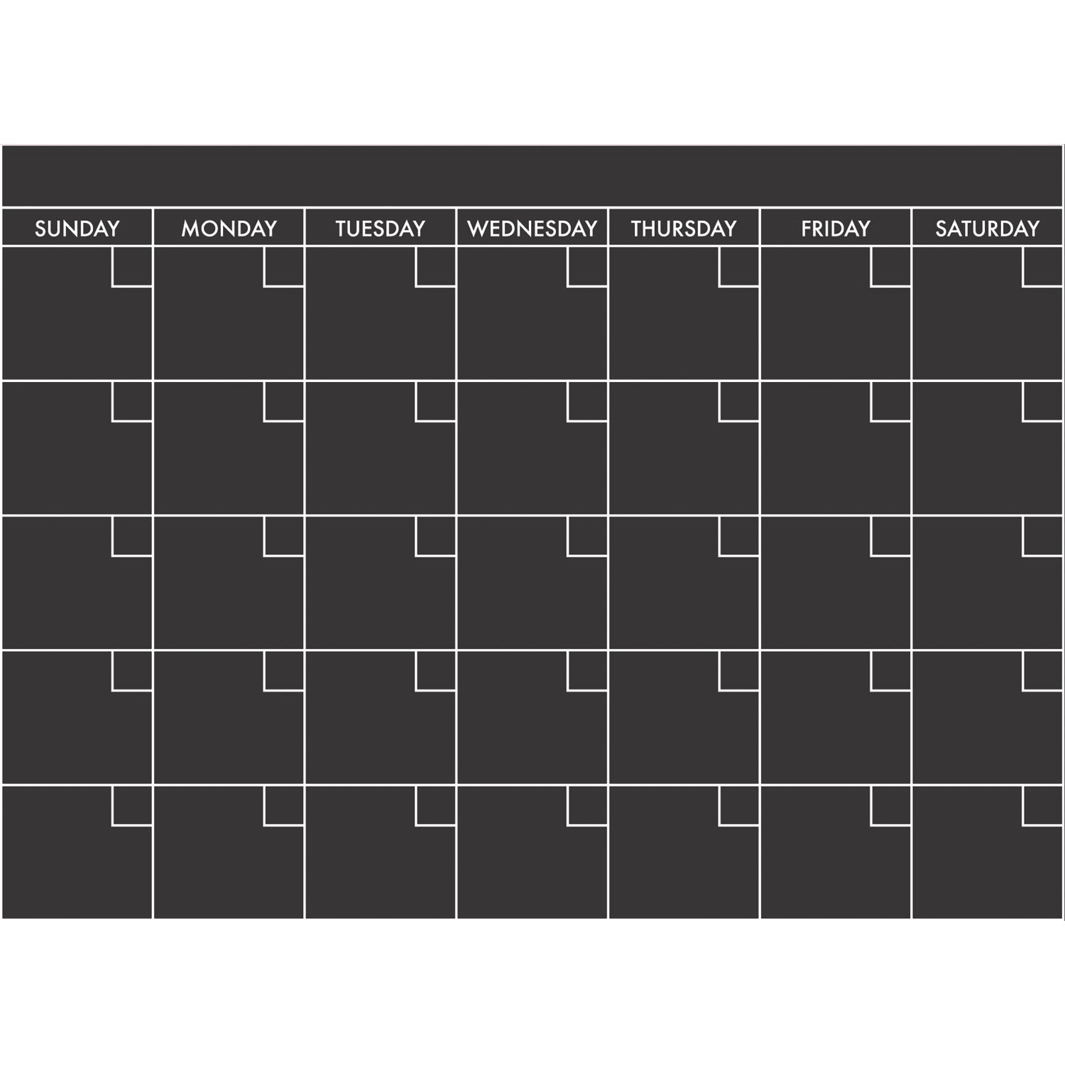 Use:Make organizing your monthly schedule simple with this Chalk Calendar peel and stick giant wall decal from RoomMates. Apply onto any smooth surface. No hooks and no holes on the walls needed. Just peel and stick! Large enough to write in an event for each day, and easy to read with white text on a black chalkboard background; just fill in the des for the month, your customized notes, and wipe clean when its time to change to the next month. For even more organization, purchase 3 calendars and put them up side-by-side to see upcoming monthly schedules as well. RoomMates wall decals are an easy and affordable way to decorate in minutes. Reposition or remove them effortlessly with no remaining sticky residue or damage to walls.