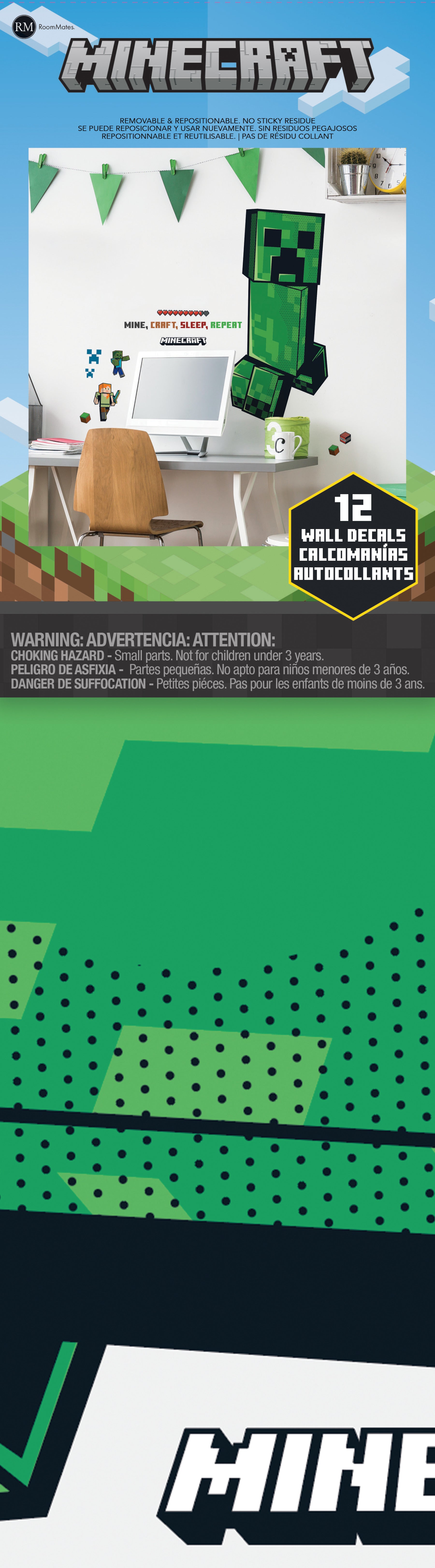 Use:Mine. Craft. Sleep. Repeat. Perfect for any Minecraft player, this officially-licensed peel and stick giant wall decal set is sure to add some Creepiness to any gaming space! Featuring a large green Creeper, Alex, and some other in-game imagery, this set is definitely going to impress. Installation is as simple as peel, stick, done!