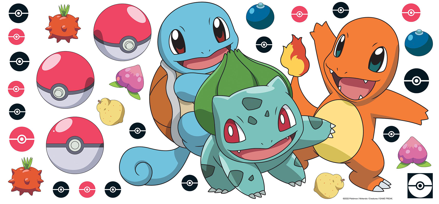 Pattern: RMK5361GM / Pok??mon Squirtle, Charmander, and Bulbasaur Peel and Stick Giant Wall Decals