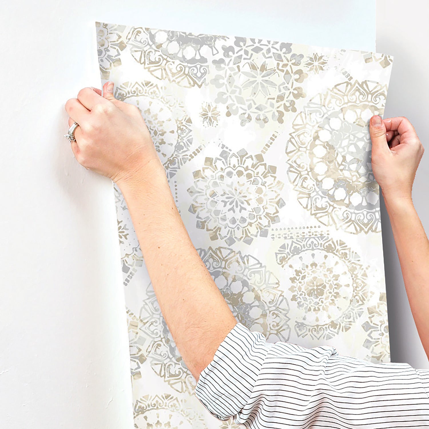 York Wallcoverings RoomMates Bohemian Blue Peel and Stick Wallpaper Bohemian Global Neutrals Wallpaper - RMK9122WP