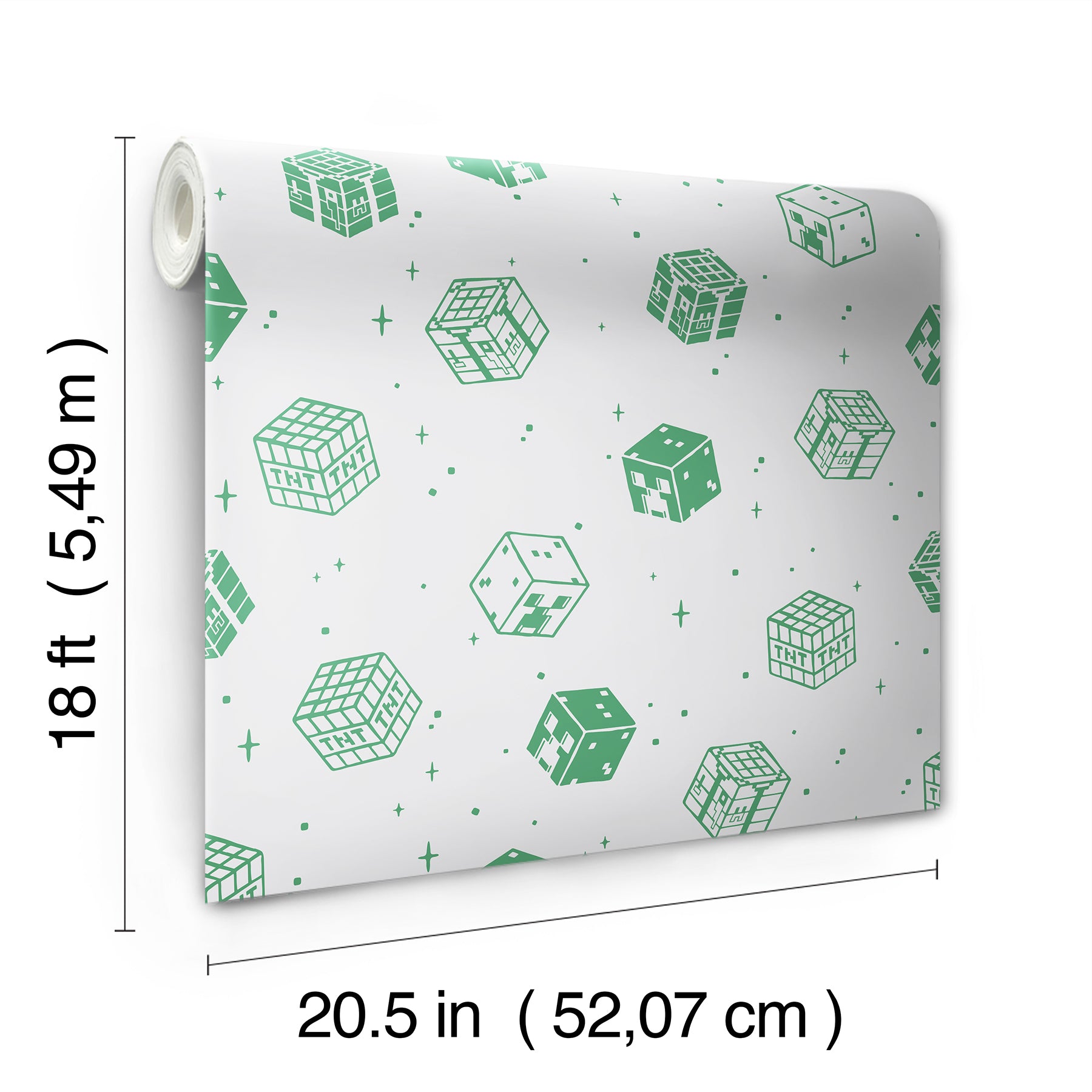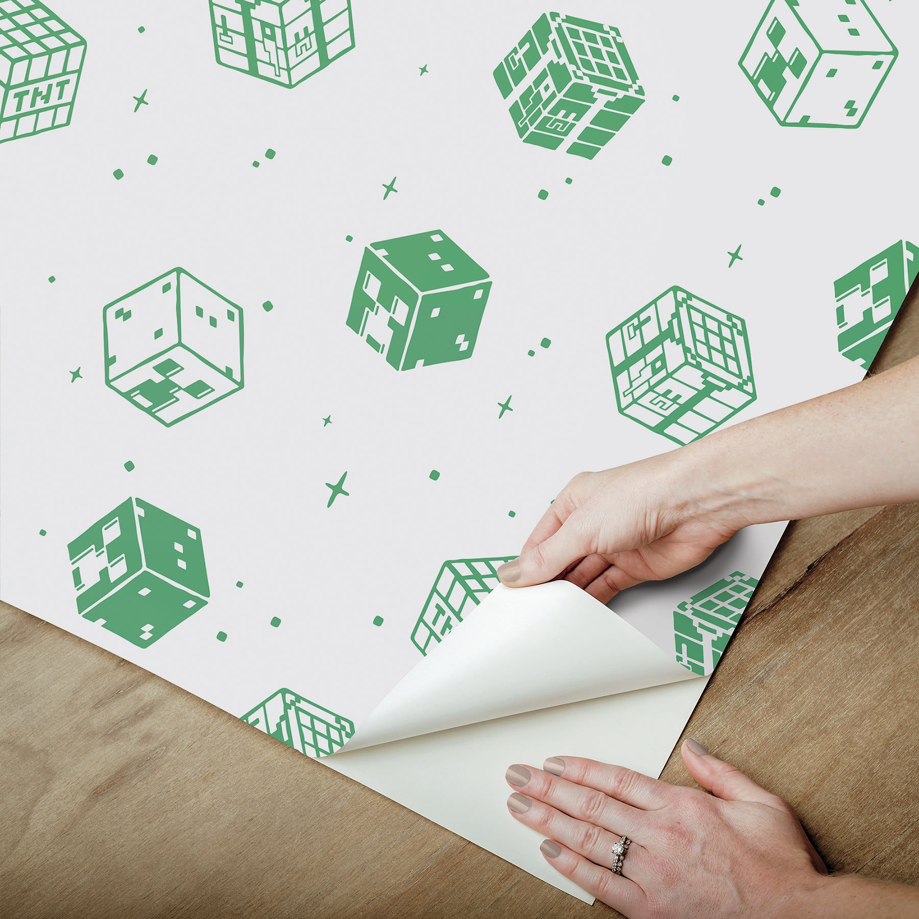 Use:A sophisticated nod to the block-building world of Minecraft, this peel and stick wallpaper is the perfect addition to any gamer's space! Featuring an assortment of green Minecraft blocks tumbling over a light grey, star-dotted backdrop, this modern print strikes the ideal balance between playful and polished. Effortlessly transform any room with this easy-to-apply wallpaper, designed to elevate your d??cor while showcasing your love for the game! Minecraft Grey Blocks Peel and Stick Wallpaper comes on one roll that measures 20.5 inches wide by 18 feet long.