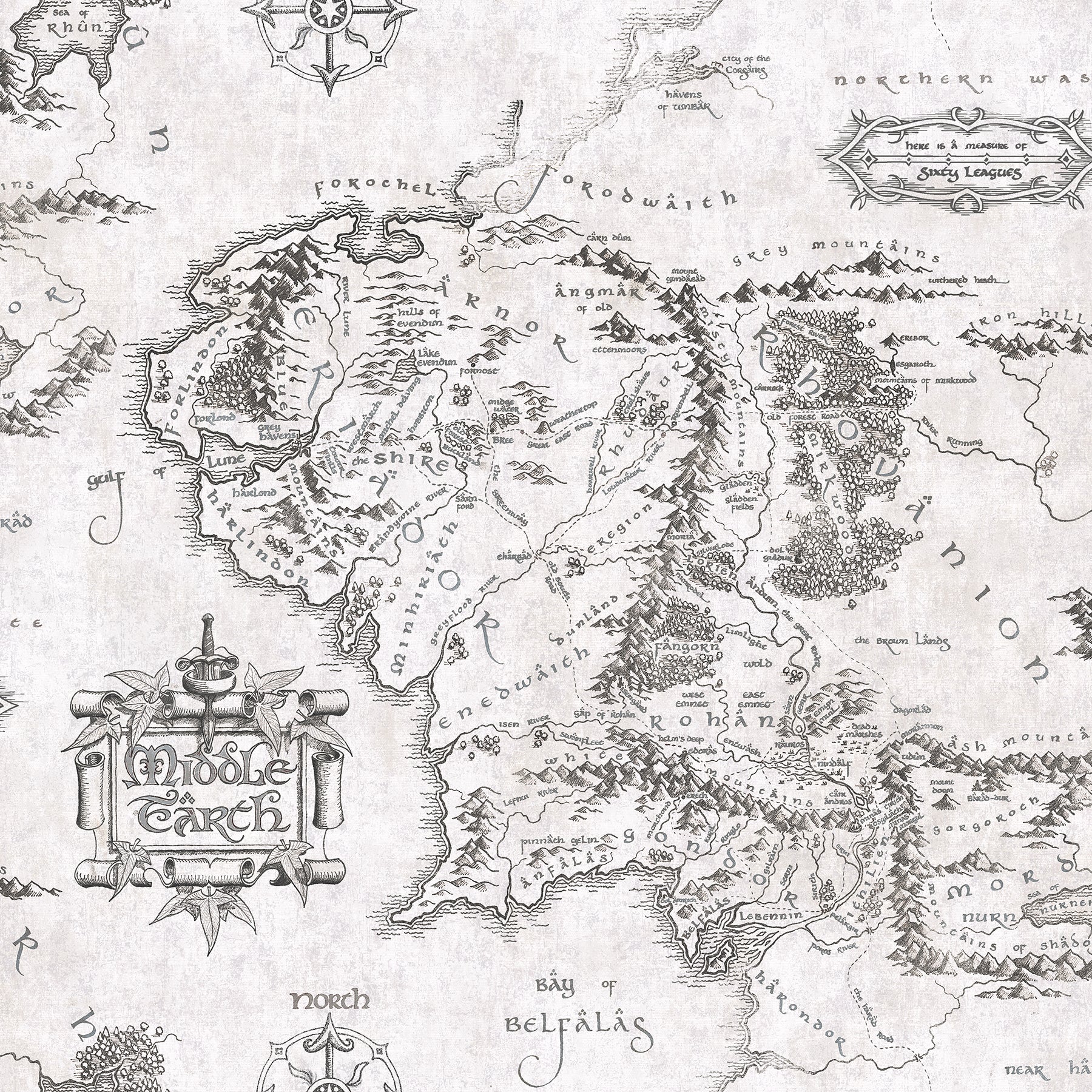 Use:Bring the timeless adventure of Lord of the Rings to your space in just Peel, Stick?Done!? This pattern features a map of Middle Earth on a distressed white backdrop, transforming any space into a realm of fantasy with ease. Lord of the Rings Black and White Middle Earth Map Peel and Stick Wallpaper comes on one roll that measures 20.5 inches wide by 18 feet long.