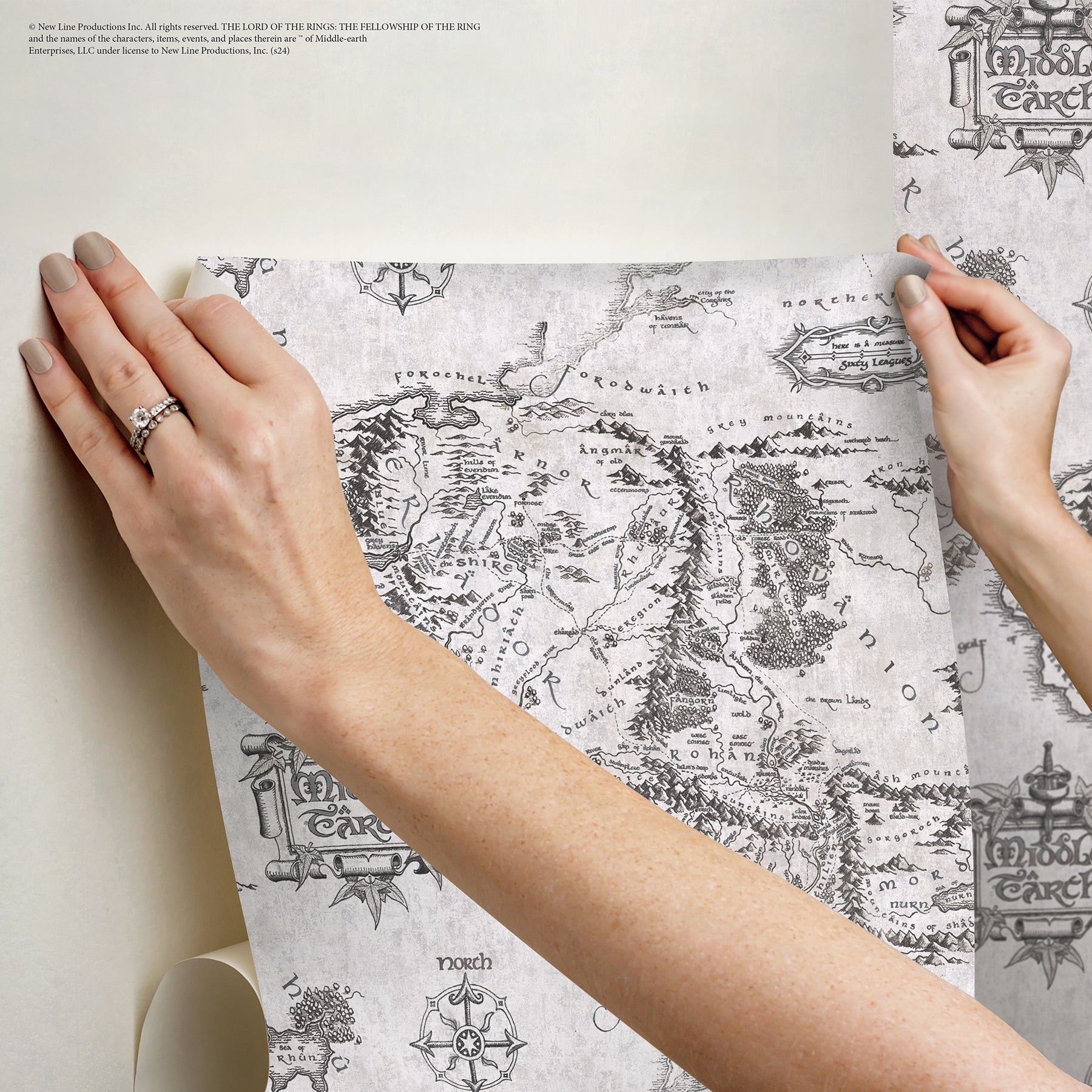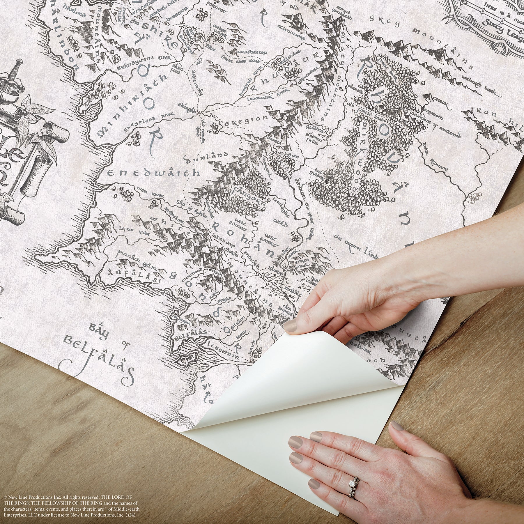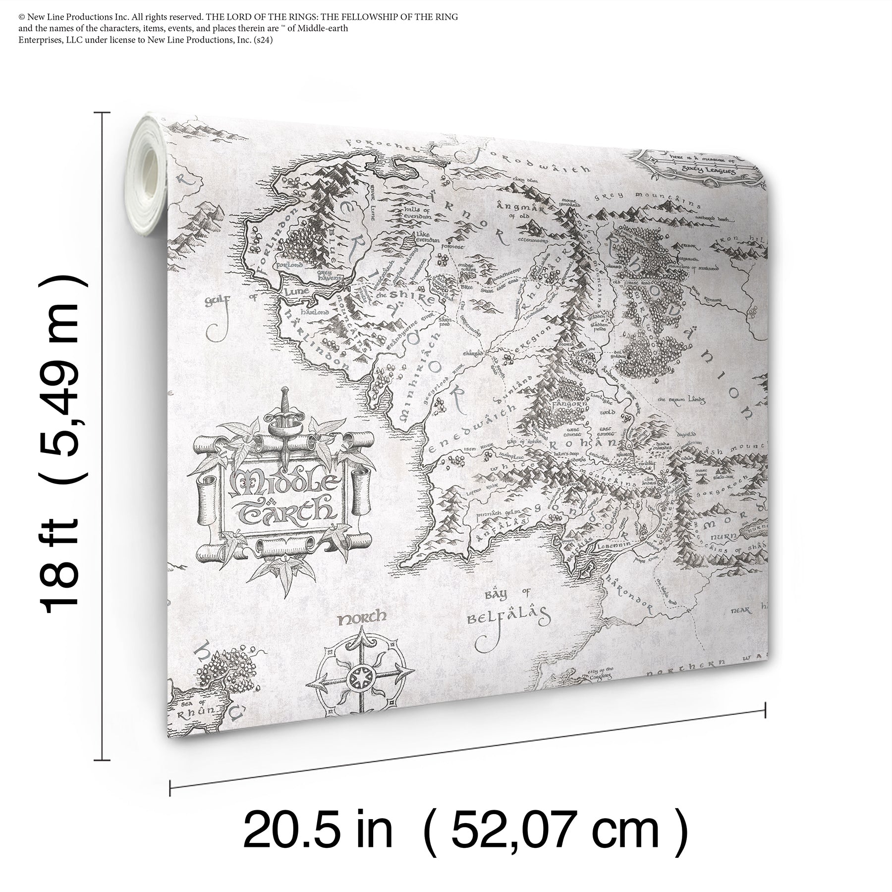 Size : Officially-licensed black and white Lord of the Rings Middle Earth map peel and stick wallpaper.Peel and stick to apply, pull up to remove.Warner Bros wall decals by RoomMates is safe for walls and leaves no sticky residue behind.Easily repositionable while installing.Warner Bros wall decals by RoomMates sticks to any smooth, flat surface - perfect for DIY projects.Ideal for rental or home decorating.Comes on a 20.5-in x 18-ft roll and covers about 30.75 sq. ft.Design repeat of 20.5-in.This product should NOT be applied to textured walls - smooth clean, dry, painted surface only (no Non-Stick paint or soap residue)