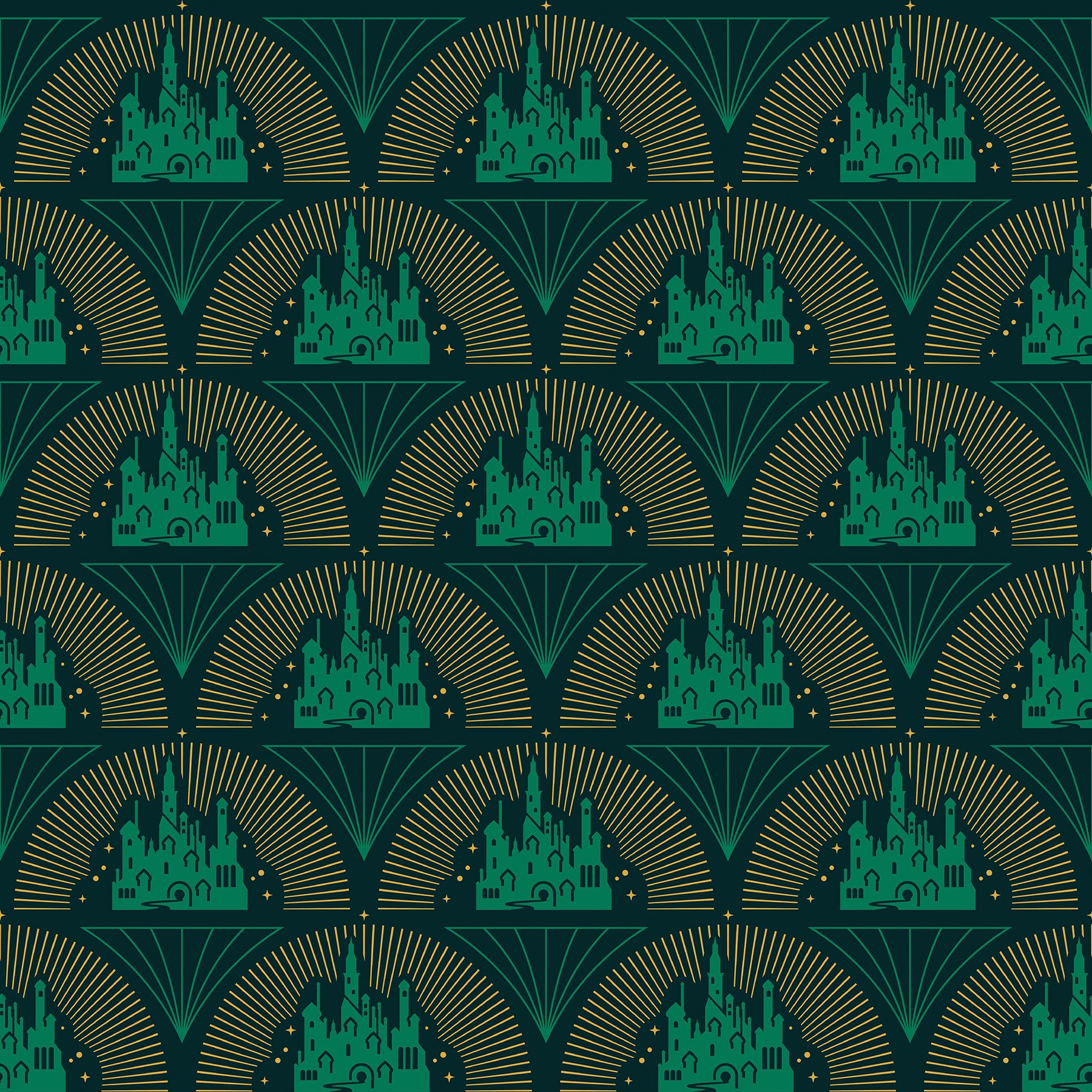 Use:Invite the ornate beauty of Emerald City into your space with this Wicked peel and stick wallpaper print. Featuring the skyline of Emerald City in a luxurious green and gold palette, this Art Deco-inspired fan print brings the magic of the film to your space. No spells needed for installation; get the look in just Peel, Stick?Done!? Wicked Emerald City Peel and Stick Wallpaper comes on one roll that measures 20.5 inches wide by 18 feet long.
