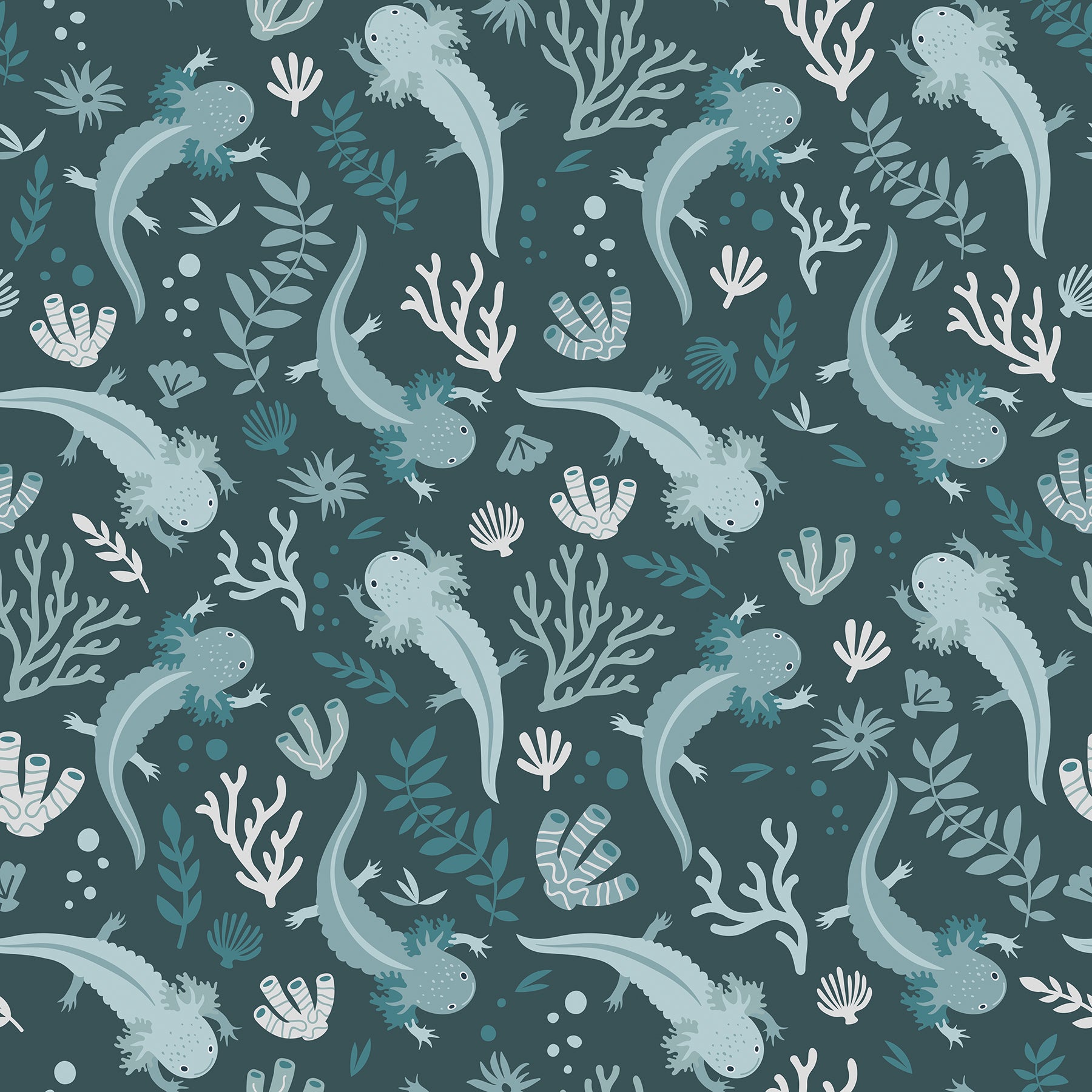 Use:Enjoy the wonder of an underwater garden occupied by curious axolotls. Featuring an assortment of axolotls and underwater foliage in a deep blue color palette, this peel and stick wallpaper brings whimsical charm to any space with ease. Axolotl Blue Underwater Garden Peel and Stick Wallpaper comes on one roll that measures 20.5 inches wide by 18 feet long.