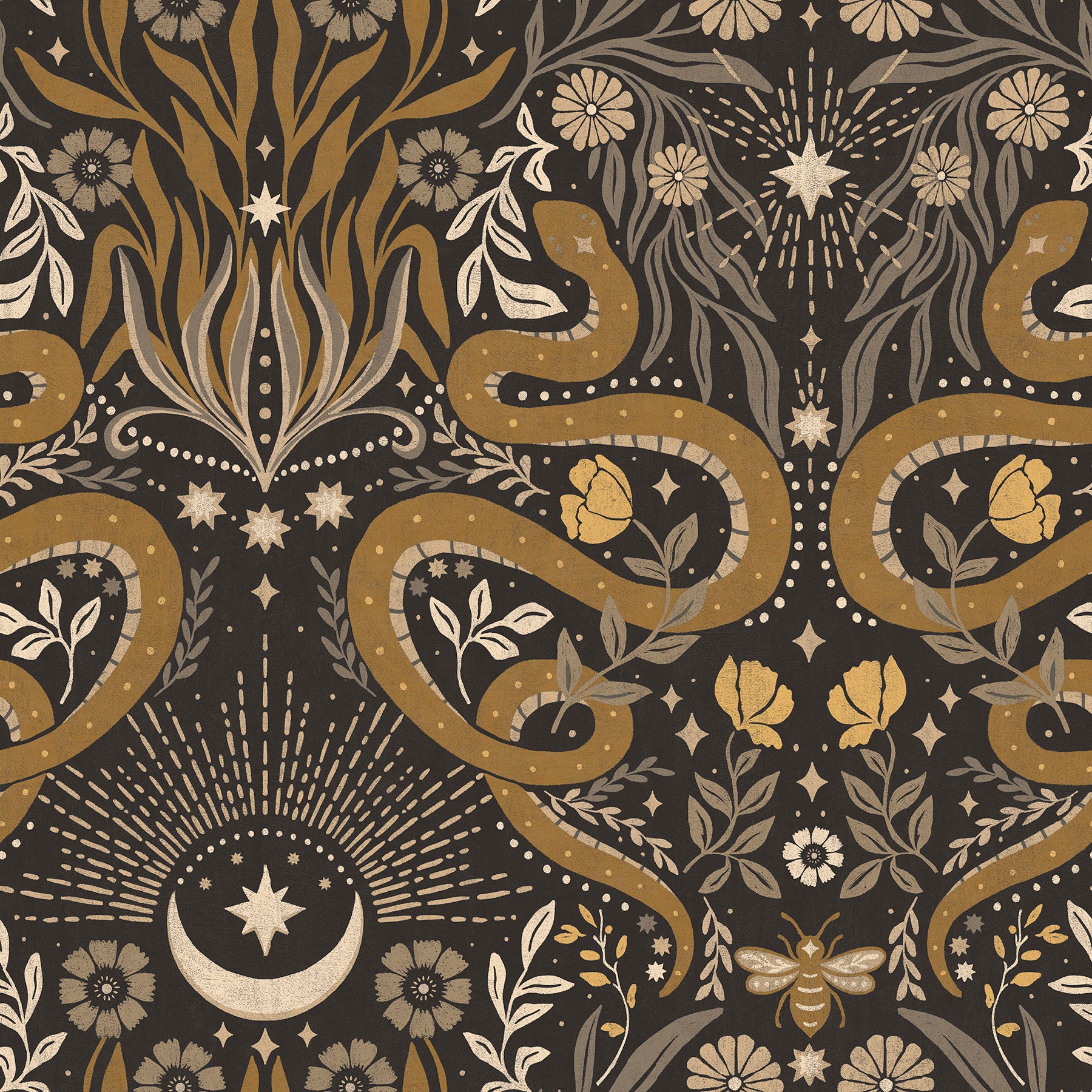 Pattern: RMWS1255 / Mystic Serpent Black Gold Peel and Stick Wallpaper