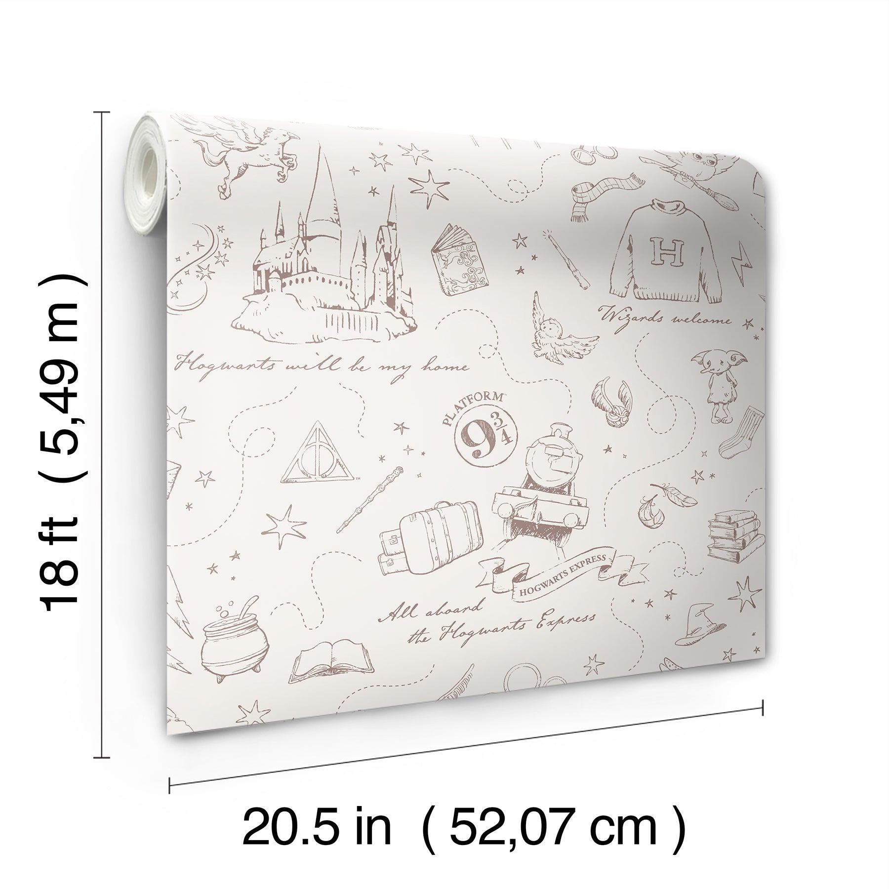 Use:Spellbinding and sweet as can be, this officially-licensed Harry Potter? peel and stick wallpaper brings the magic of Hogwarts to any space with ease. This pattern features memorable icons from the Harry Potter universe, like Hogwarts jumpers, the Sorting Hat, and more, over a soft cream backdrop. No spells required for installation; just Peel, Stick?Done!? Harry Potter Magical Moments Trail Cream Peel and Stick Wallpaper comes on one roll that measures 20.5 inches wide by 18 feet long.