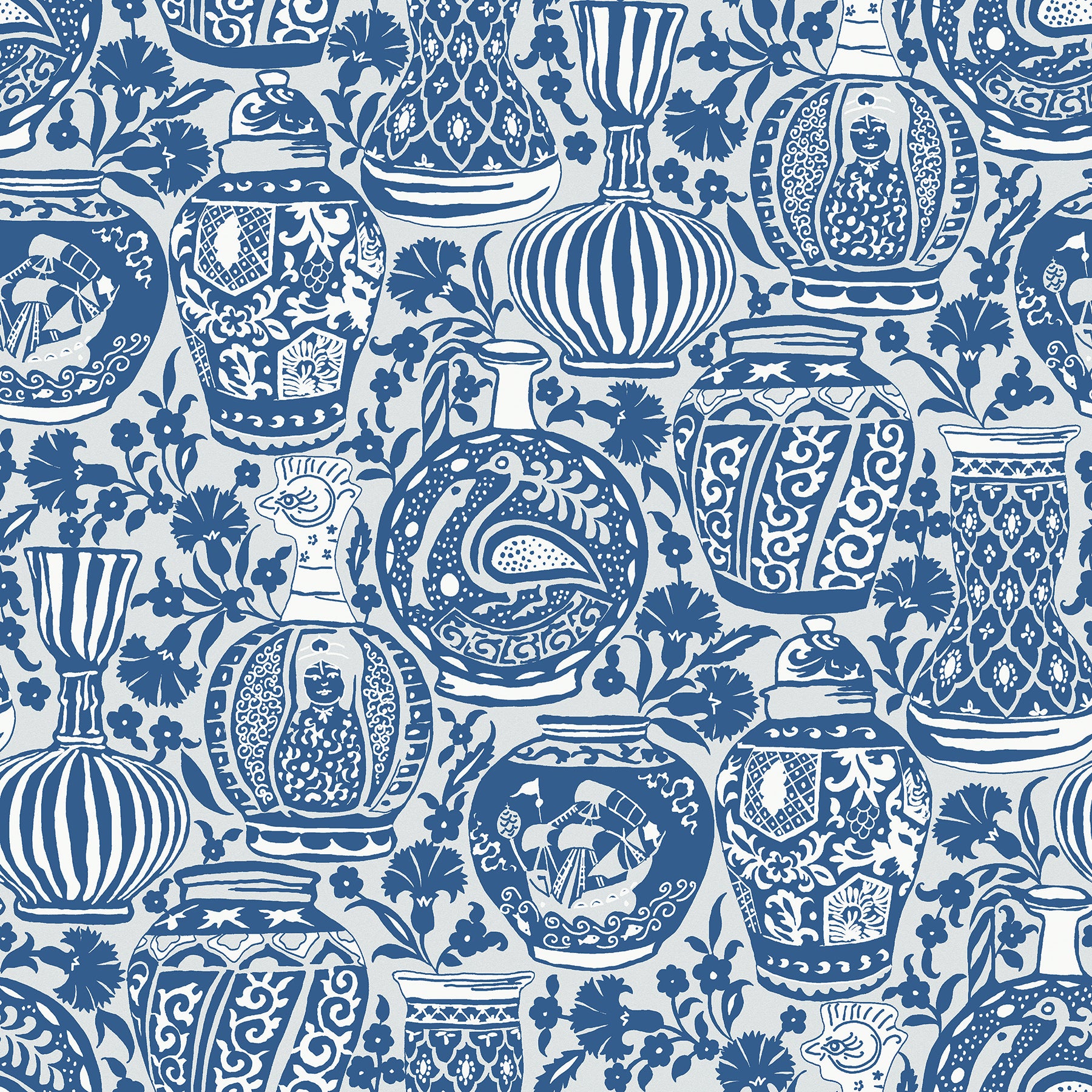 York Wallcoverings RoomMates Delft Pottery Blue Peel and Stick Wallpaper Modern Global Blues Wallpaper - RMWS1273