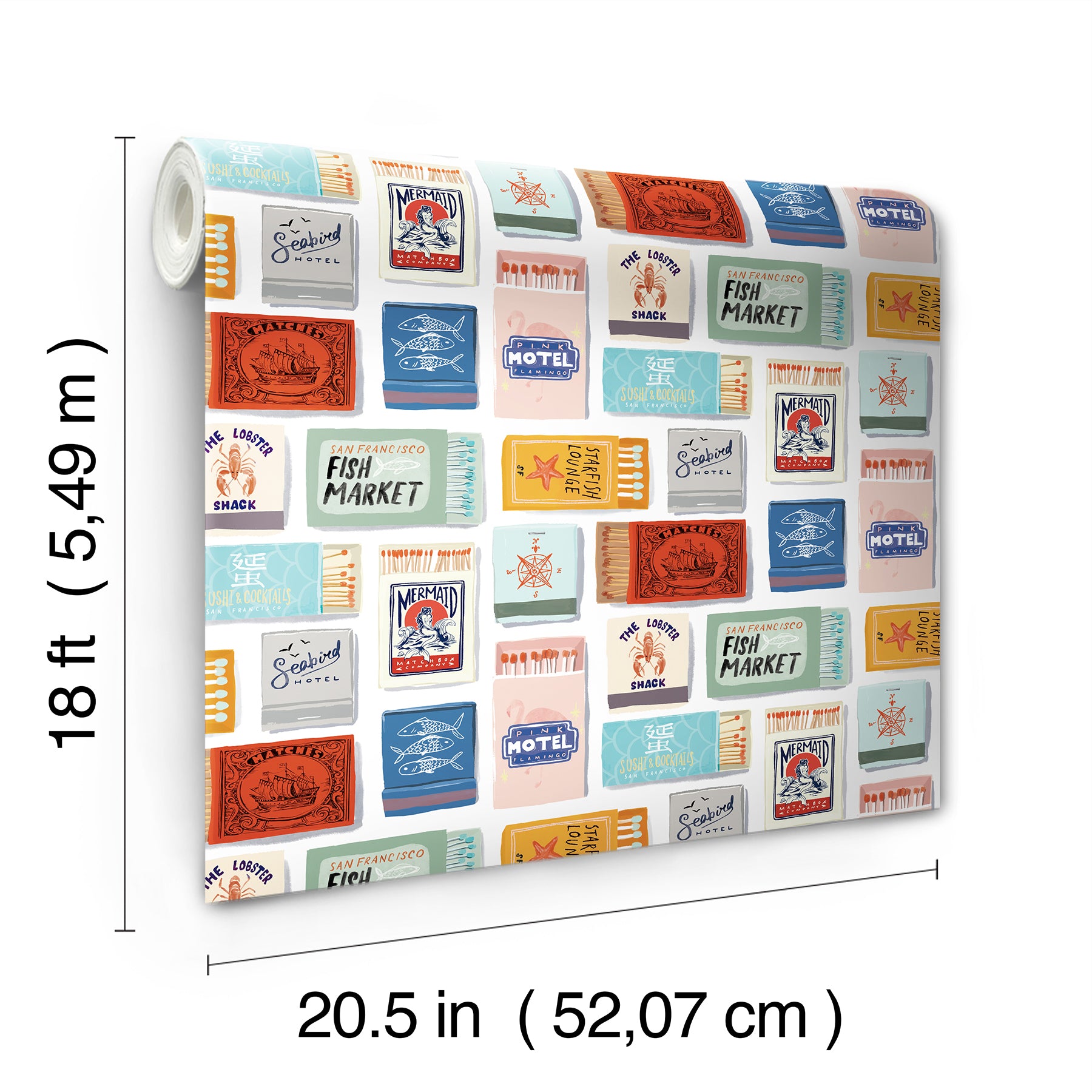 Use:Strike up some style with this wonderfully-kitschy matchbox peel and stick wallpaper. Featuring assorted pink, orange and blue nautical matchboxes, this whimsical pattern charms up any space in just Peel, Stick?Done!? The Perfect Match White Peel and Stick Wallpaper comes on one roll that measures 20.5 inches wide by 18 feet long.