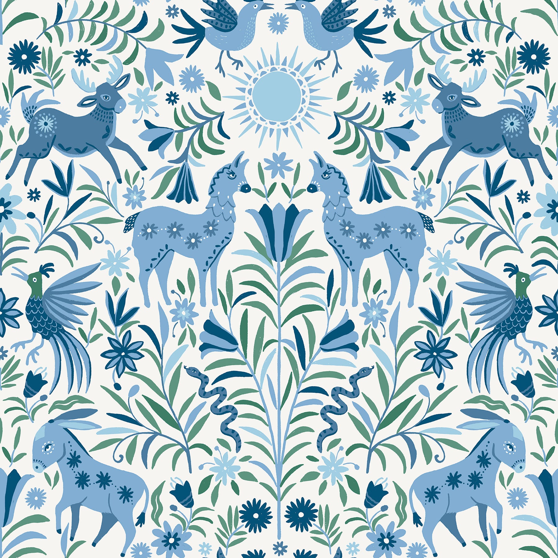 Use:Fashion your walls with fiesta-worthy color and energy! Featuring an array of animals adorned with vibrant florals and greenery, this blue and green peel and stick wallpaper pattern brings worldly whimsy to any space in just Peel, Stick?Done!? Whimsical Creatures Blue Peel and Stick Wallpaper comes on one roll that measures 20.5 inches wide by 18 feet long.