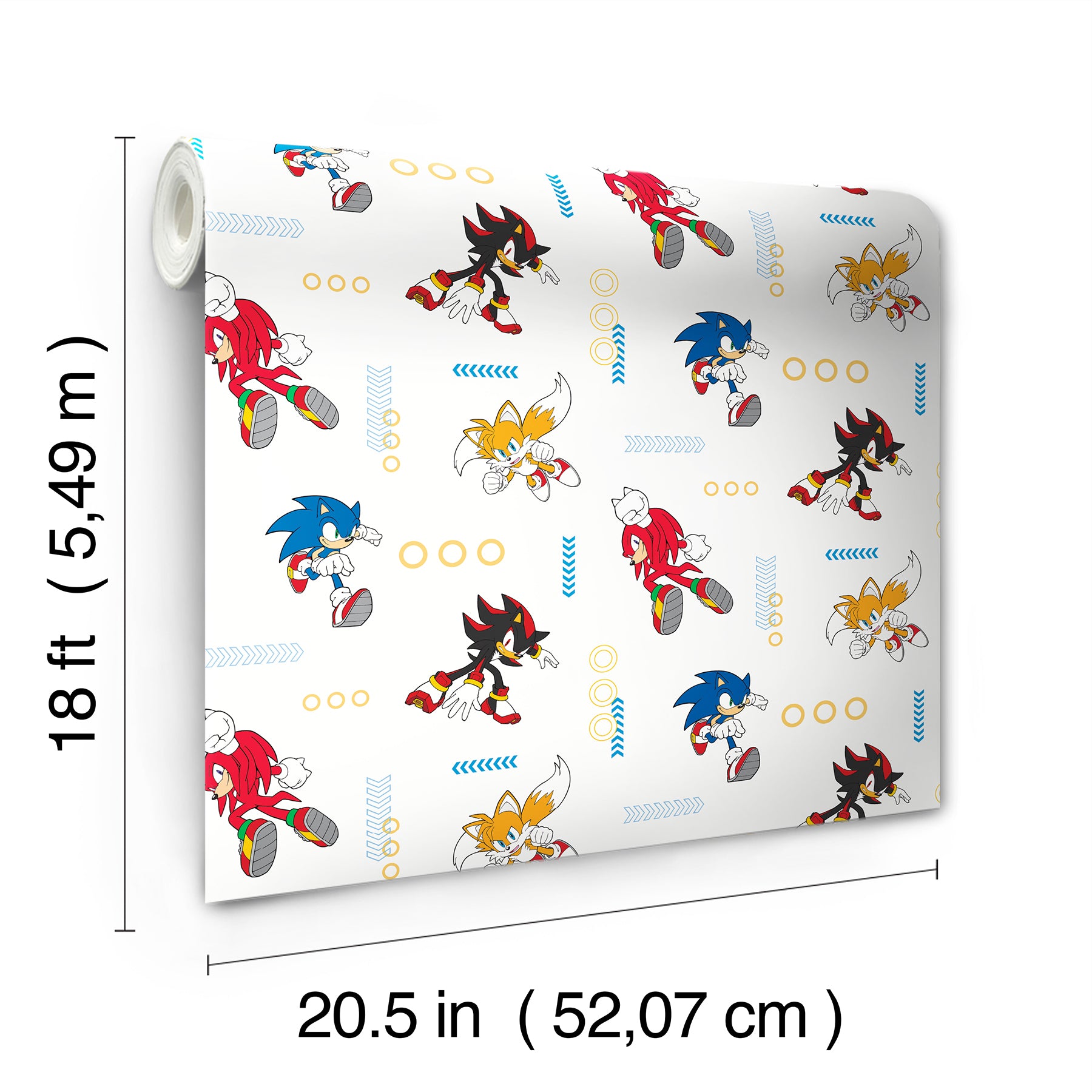 Use:Let the action unfold with this dynamic Sonic the Hedgehog peel and stick wallpaper. This officially-licensed design features Sonic, Tails, Knuckles and Shadow mid-action against a white backdrop. Bring the energy to your space in just Peel, Stick?Done!? Sonic The Hedgehog Let?s Roll Blue and White? Peel and Stick Wallpaper comes on one roll that measures 20.5 inches wide by 18 feet long. Let the action unfold with this dynamic Sonic the Hedgehog peel and stick wallpaper. This officially-licensed design features Sonic, Tails, Knuckles and Shadow mid-action against a white backdrop.; Peel and stick to apply, pull up to remove; Roommates is safe for walls and leaves no sticky residue behind; Easily repositionable while installing; Roommates sticks to any smooth, flat surface - perfect for DIY projects; Ideal for rental or home decorating; Comes on a 20.5-in x 18-ft roll and covers about 30.75 sq. ft; Design repeat of 20.5-in; This product should NOT be applied to textured walls - smooth clean, dry, painted surface only (no Non-Stick paint or soap residue).