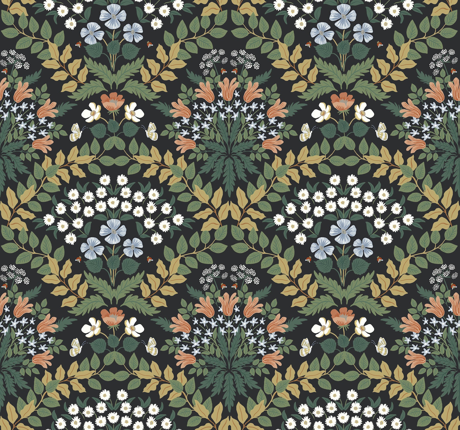 York Wallcoverings Rifle Paper Co. Second Edition Bramble Black and Green Wallpaper Botanical Greens - RP7318