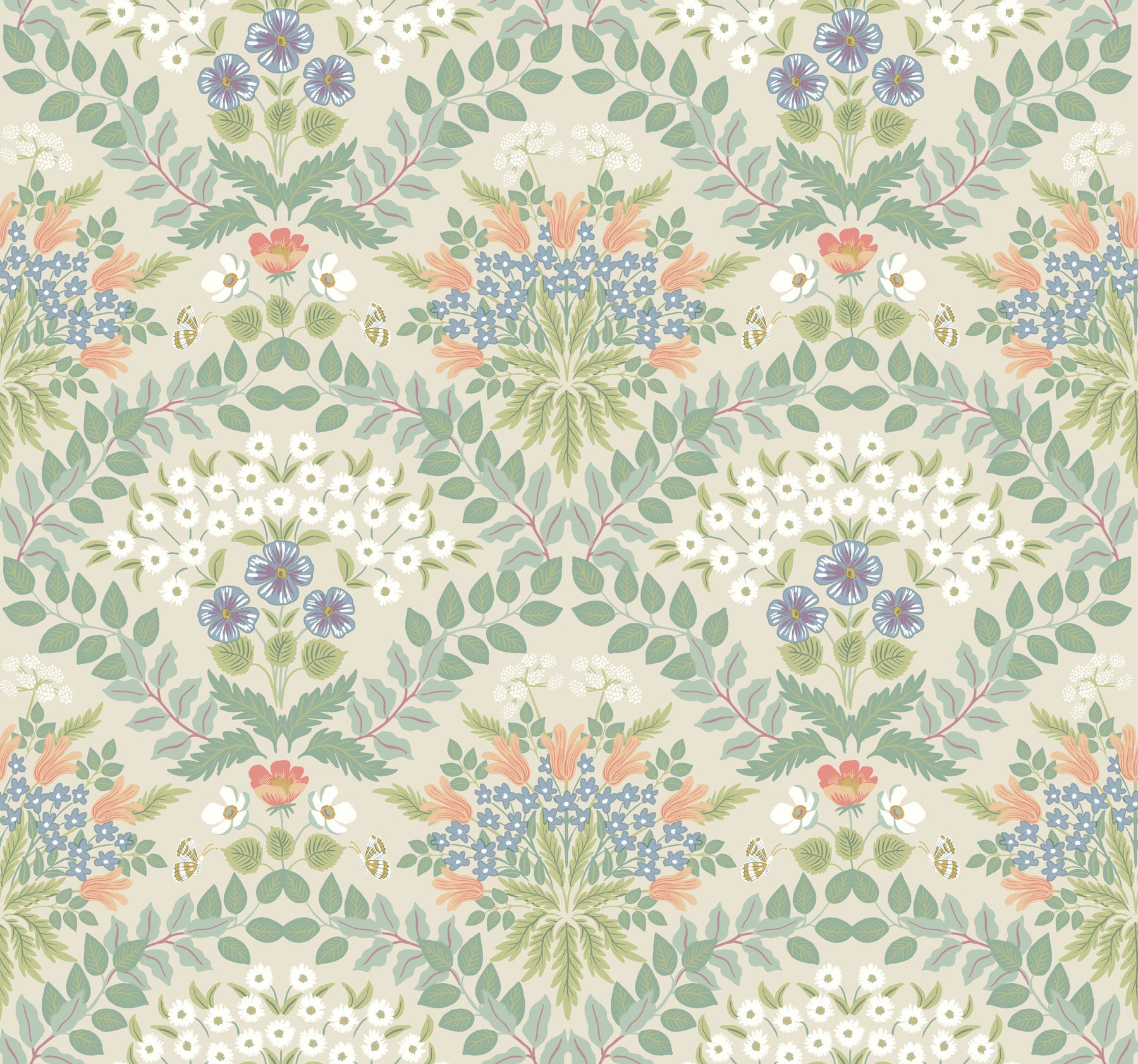 York Wallcoverings Rifle Paper Co. Second Edition Bramble Beige and Green Wallpaper Botanical Greens - RP7321