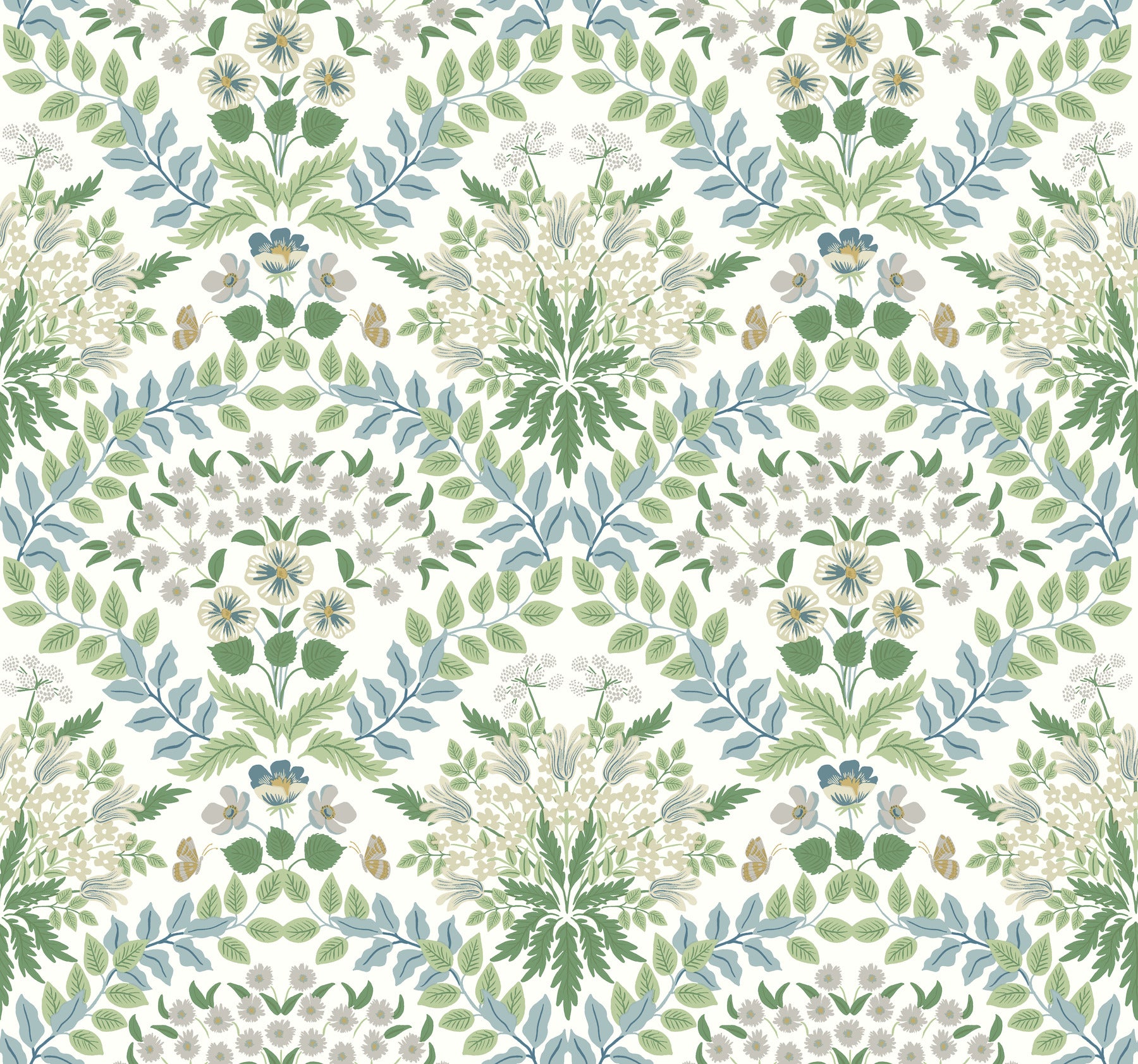 York Wallcoverings Rifle Paper Co. Second Edition Bramble White and Blue Wallpaper Botanical Whites and Off-Whites - RP7323