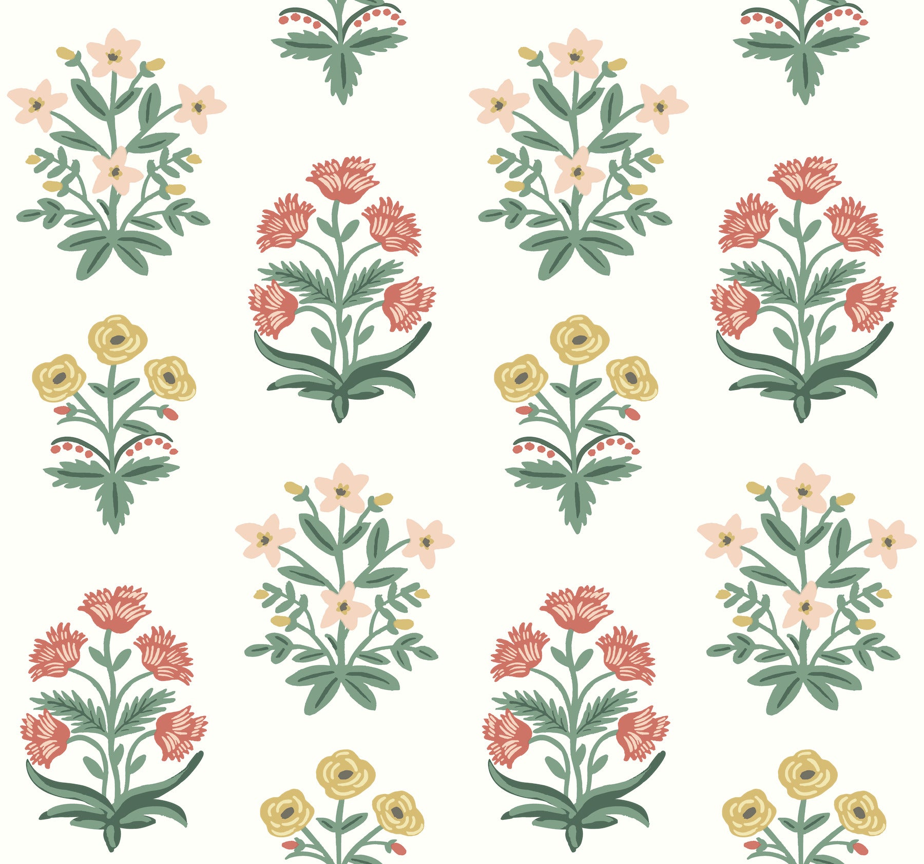 York Wallcoverings Rifle Paper Co. Second Edition Mughal Rose White and Pink Wallpaper Florals and Flowers Whites and Off-Whites - RP7349