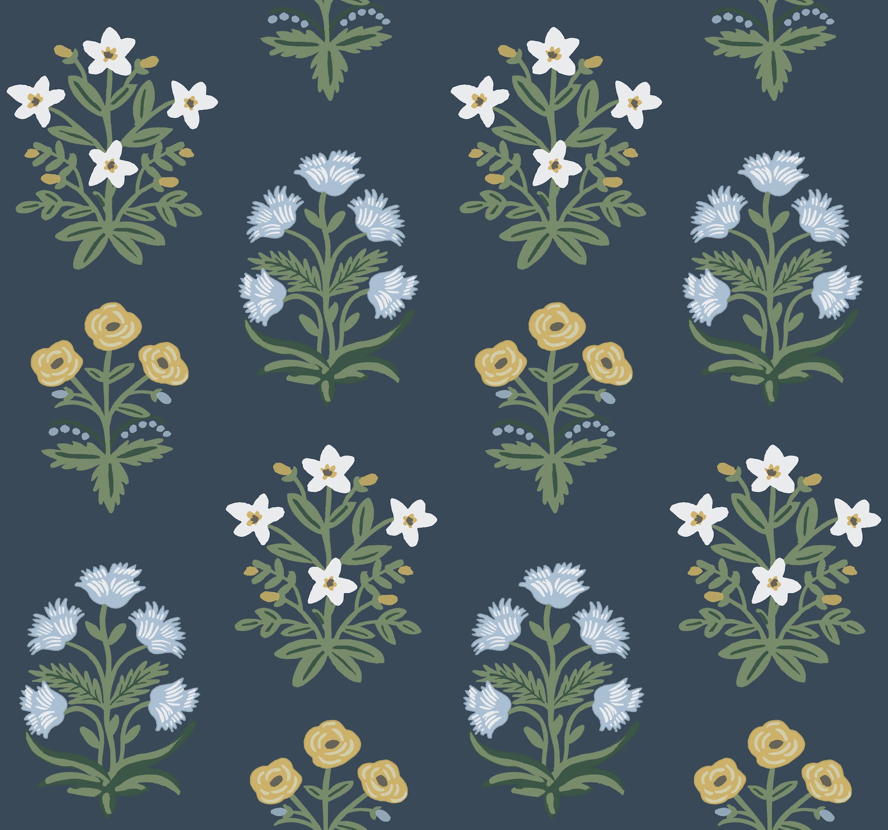 York Wallcoverings Rifle Paper Co. Second Edition Mughal Rose Blue and Purple Wallpaper Florals and Flowers Blues - RP7351
