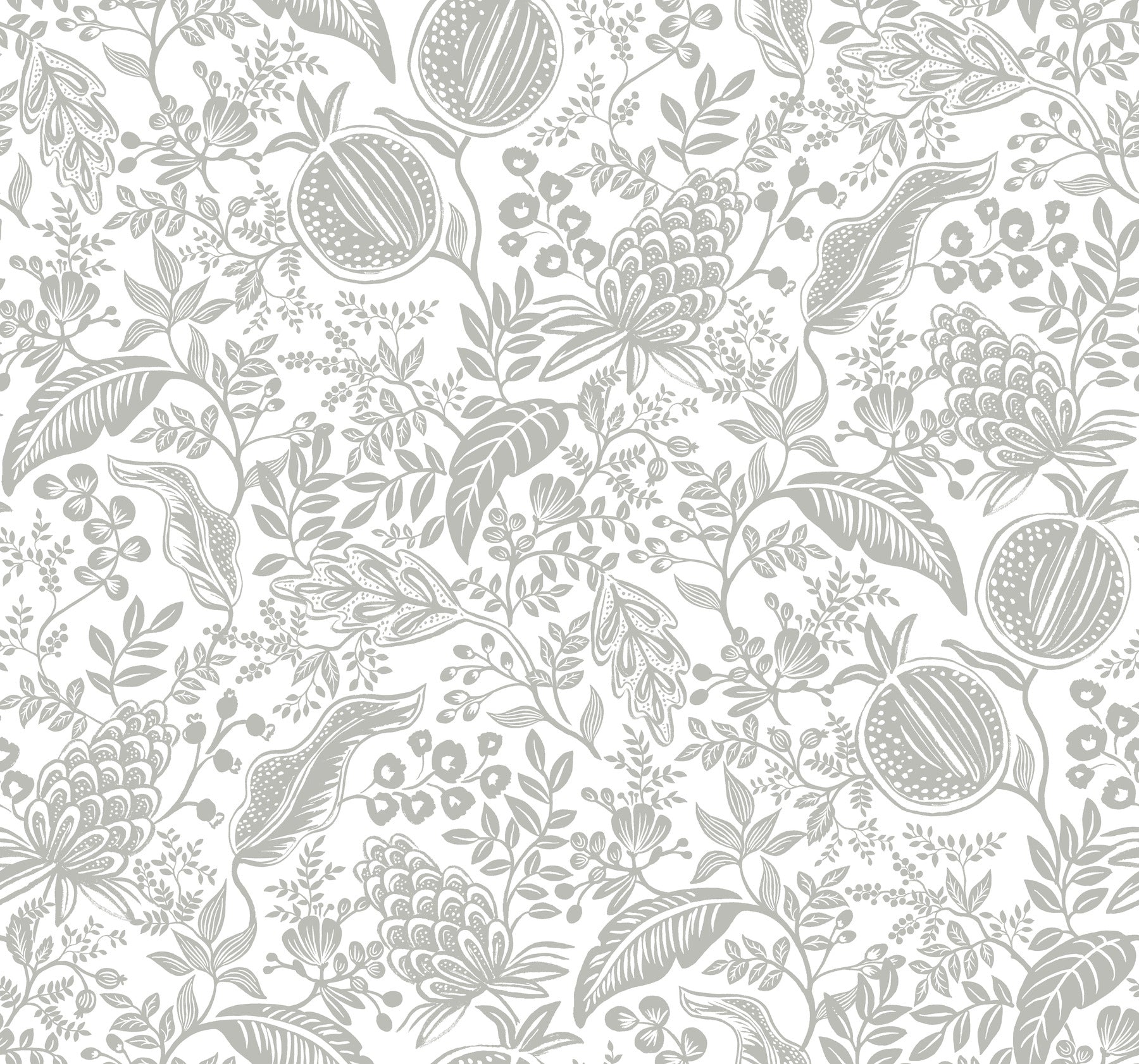 York Wallcoverings Rifle Paper Co. Second Edition Pomegranate White and Black Wallpaper Botanical Whites and Off-Whites - RP7387