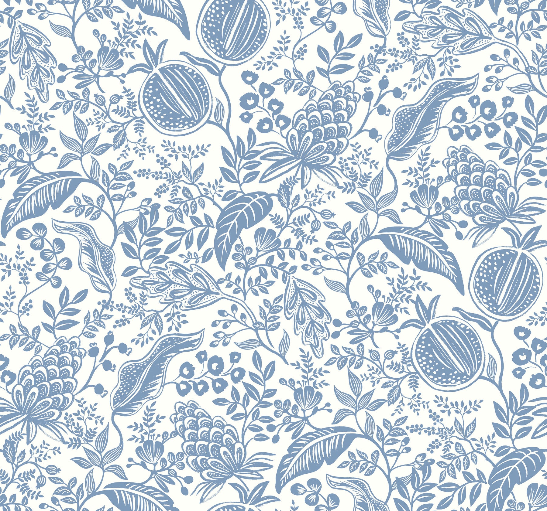 York Wallcoverings Rifle Paper Co. Second Edition Pomegranate White and Blue Wallpaper Botanical Whites and Off-Whites - RP7390