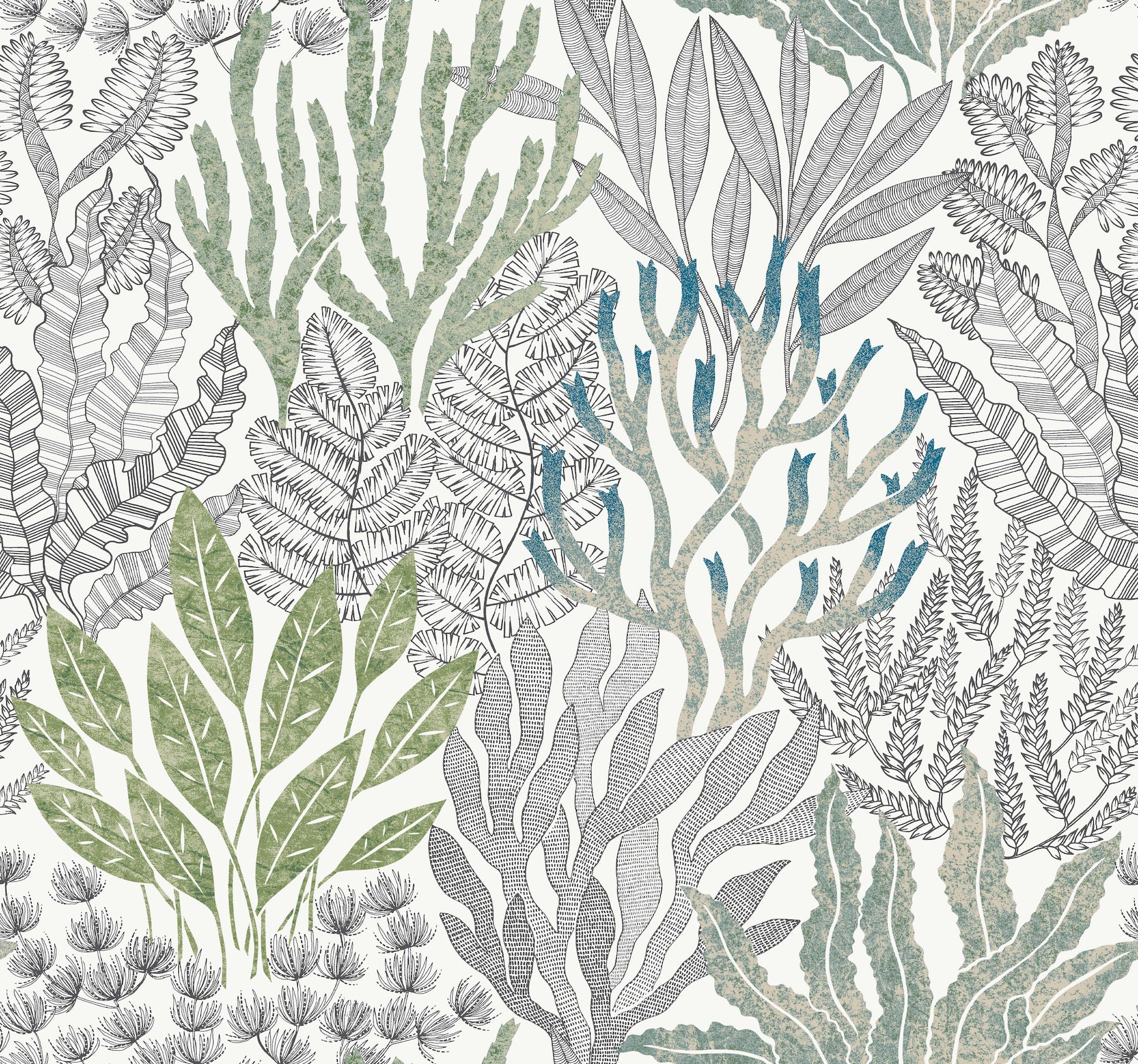 Pattern: RT7803 / Coral Leaves Blue and Green Wallpaper