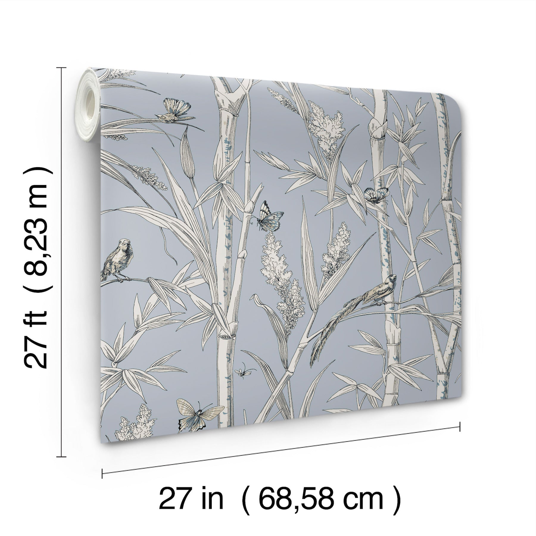 Use:Bambou Toile perfectly captures the serenity of a bamboo forest, the illustrated flora and teeming wildlife inked in black and white against pale blue. This Bambou Toile Wallpaper measures approximately 27 inches wide by 27 feet long, measuring approximately 60.8 square feet per roll. The quintessential design for timeless romance, toile (pronounced ?twall?) traces its origins to 18th century fabrics. This celebrated motif is explored with a range of classical reproductions and modern reimaginings.