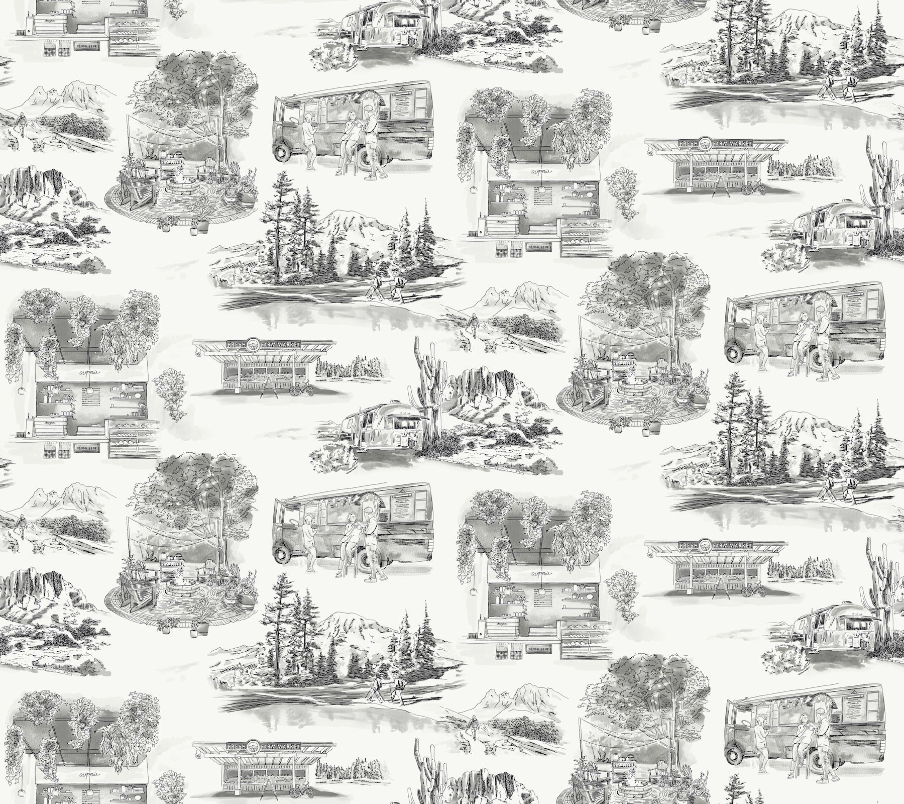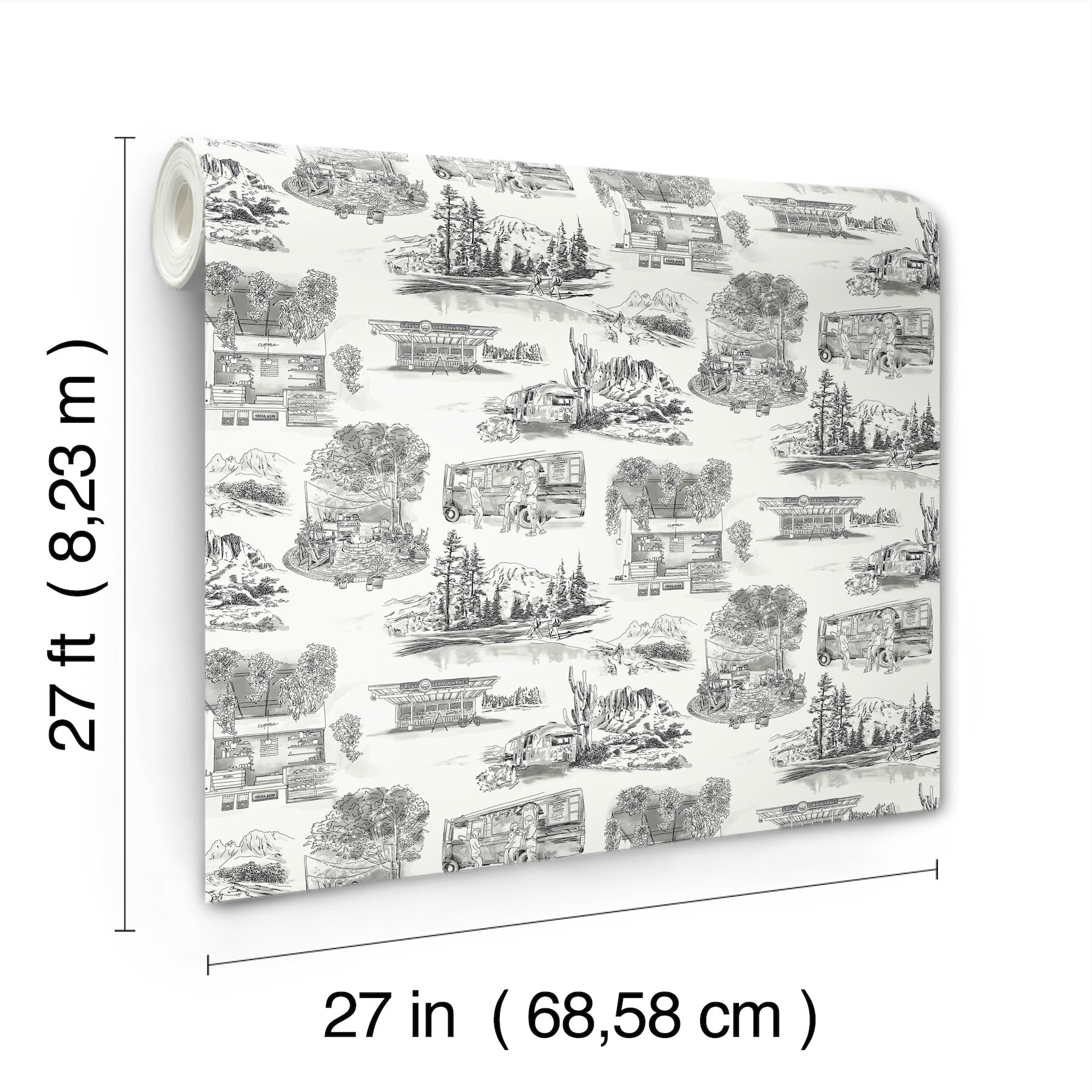 Use:Modern Vista Toile's charming tour of the country features scenic vignettes of roadtrip travels simply illustrated with minimal outlines and soft grey watercolors. This Modern Vista Toile Wallpaper measures approximately 27 inches wide by 27 feet long, measuring approximately 60.8 square feet per roll. The quintessential design for timeless romance, toile (pronounced ?twall?) traces its origins to 18th century fabrics. This celebrated motif is explored with a range of classical reproductions and modern reimaginings.