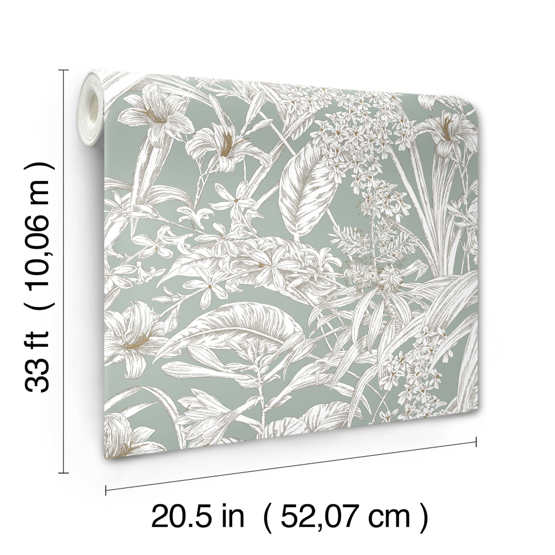 Use:The tropical tranquility of Orchid Conservatory Toile is created with layers of white flora delicatly detailed with grey inks and metallic gold touches, all softly offset by a delicately striped aqua backdrop. This Orchid Conservatory Toile Wallpaper measures approximately 20.5 inches wide by 33 feet long, measuring approximately 56.4 square feet per roll. The quintessential design for timeless romance, toile (pronounced ?twall?) traces its origins to 18th century fabrics. This celebrated motif is explored with a range of classical reproductions and modern reimaginings.
