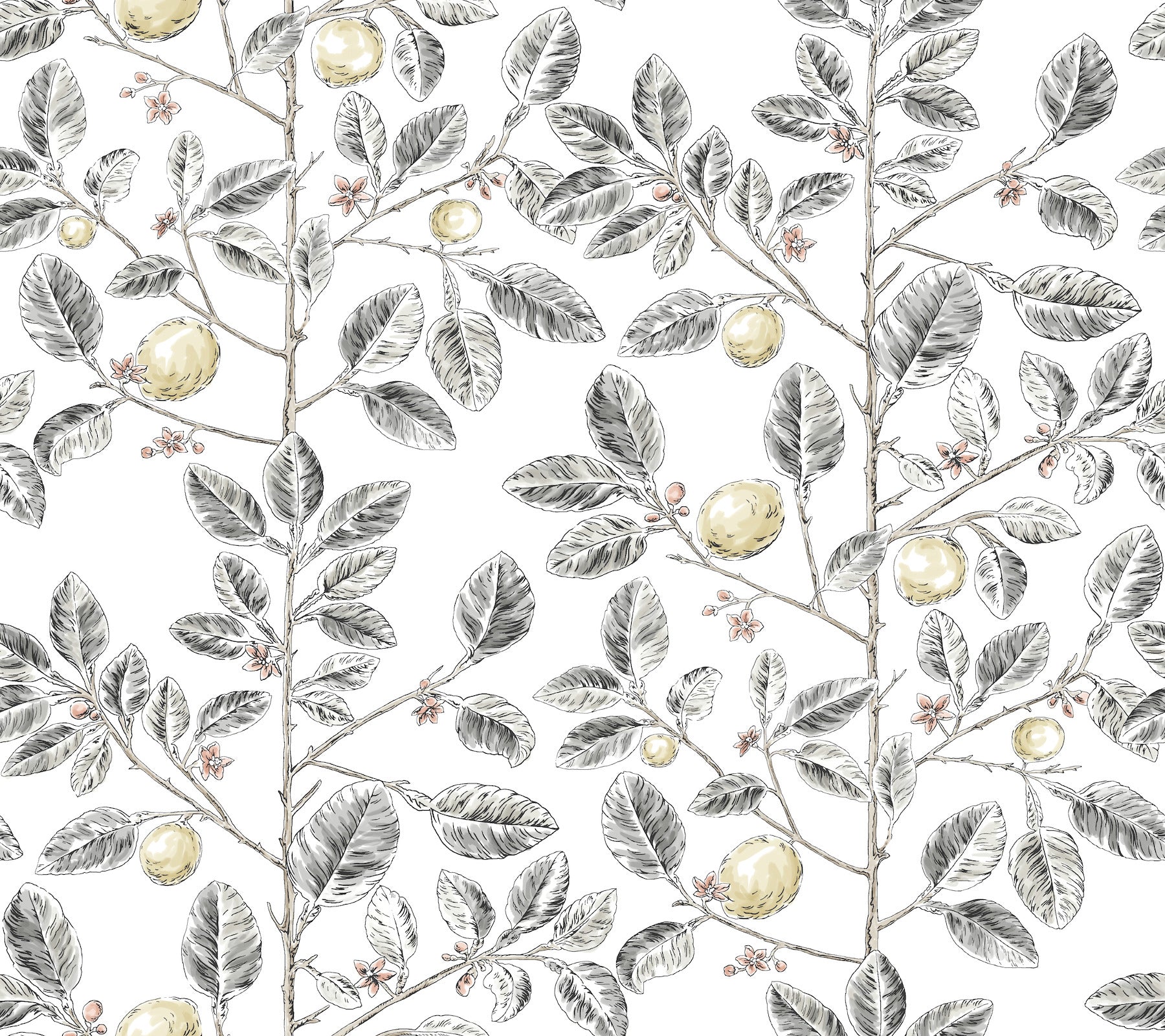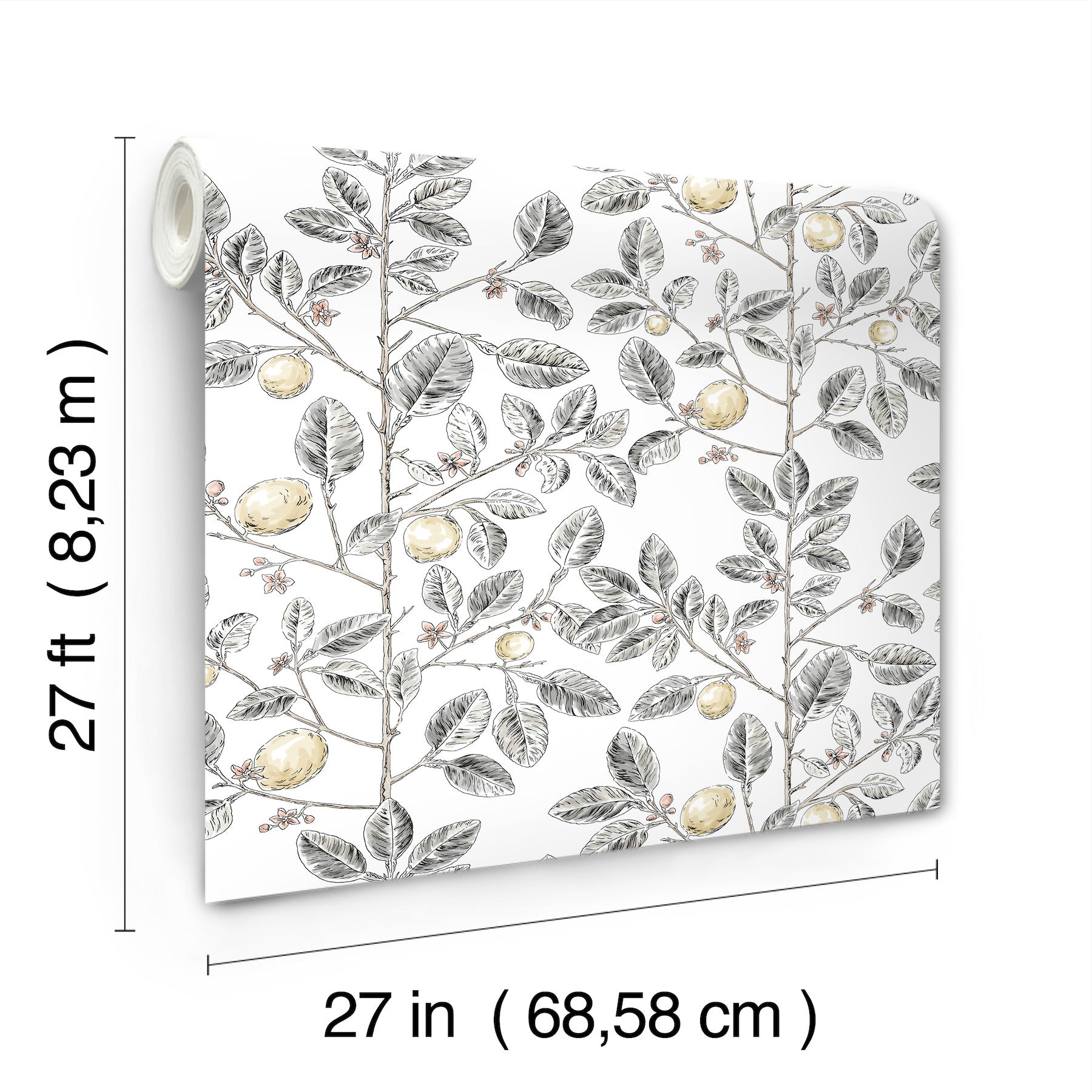 Use:Limoncello's perfectly pin-straight groves are lovingly painted in shades of pale yellow, grey, and light brown accented by delicate pink blossoms. This Limoncello Toile Wallpaper measures approximately 27 inches wide by 27 feet long, measuring approximately 60.8 square feet per roll. The quintessential design for timeless romance, toile (pronounced ?twall?) traces its origins to 18th century fabrics. This celebrated motif is explored with a range of classical reproductions and modern reimaginings.