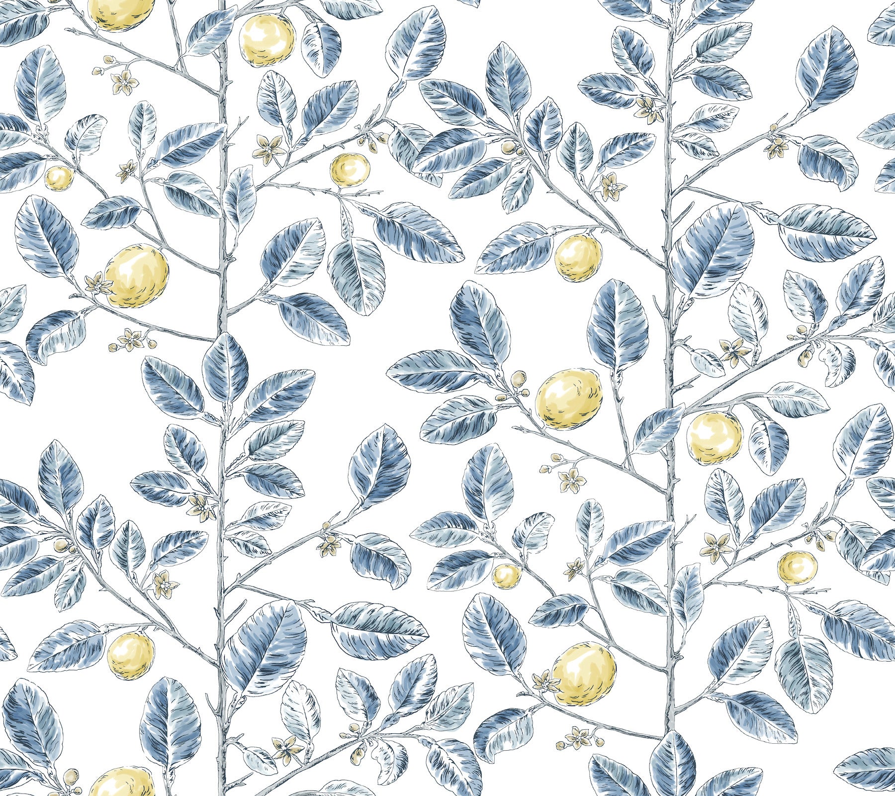 Use:Limoncello's perfectly pin-straight groves are lovingly painted in shades of yellow, blue, and grey accented by delicate golden-brown blossoms. This Limoncello Toile Wallpaper measures approximately 27 inches wide by 27 feet long, measuring approximately 60.8 square feet per roll. The quintessential design for timeless romance, toile (pronounced ?twall?) traces its origins to 18th century fabrics. This celebrated motif is explored with a range of classical reproductions and modern reimaginings.