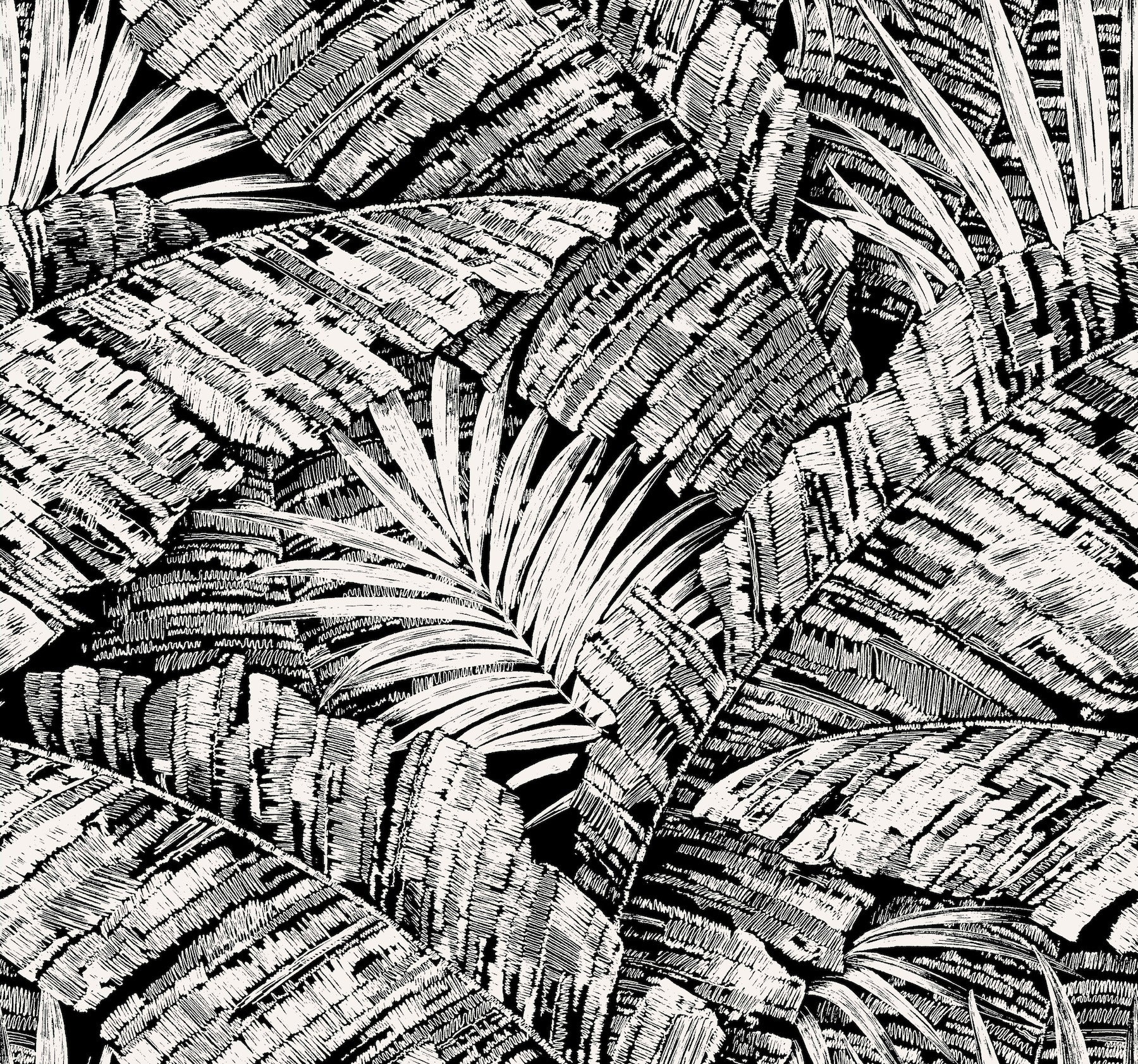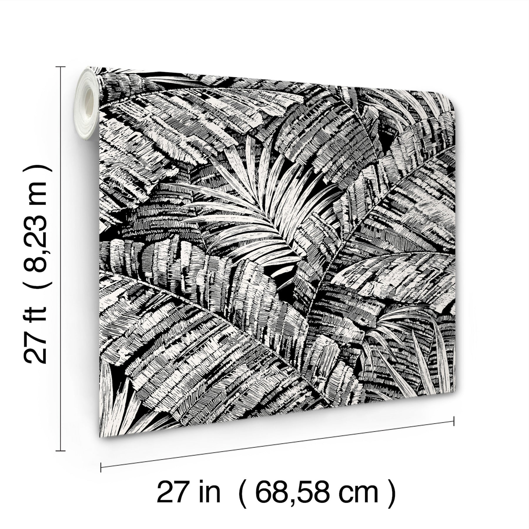Use:Retreat within Palm Cove Toile's overlapping layers of tropical fronds, the leaves inked in white against black. This Palm Cove Toile Wallpaper measures approximately 27 inches wide by 27 feet long, measuring approximately 60.8 square feet per roll. The quintessential design for timeless romance, toile (pronounced ?twall?) traces its origins to 18th century fabrics. This celebrated motif is explored with a range of classical reproductions and modern reimaginings.