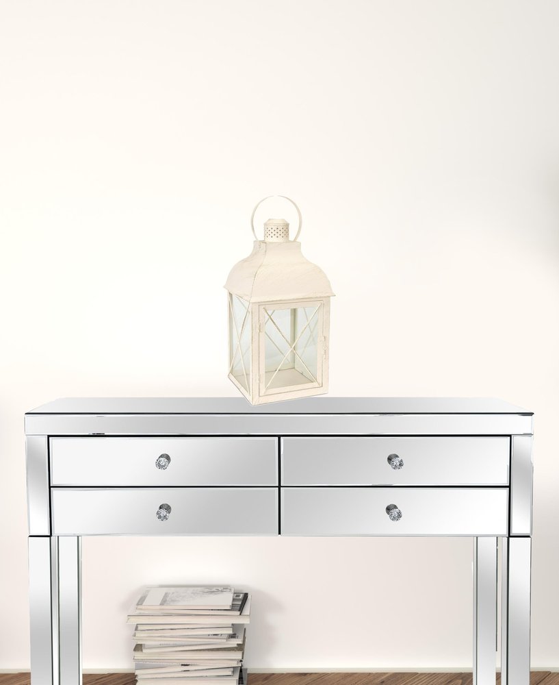 Set of Three Ivory Distressed Geometric Glass And Metal Floor Lantern Candle Holders