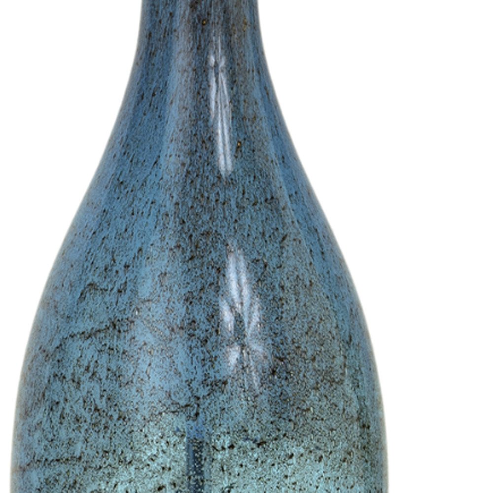 Set of Two 30" Blue Crystal And Glass Table Lamps With White Drum Shades