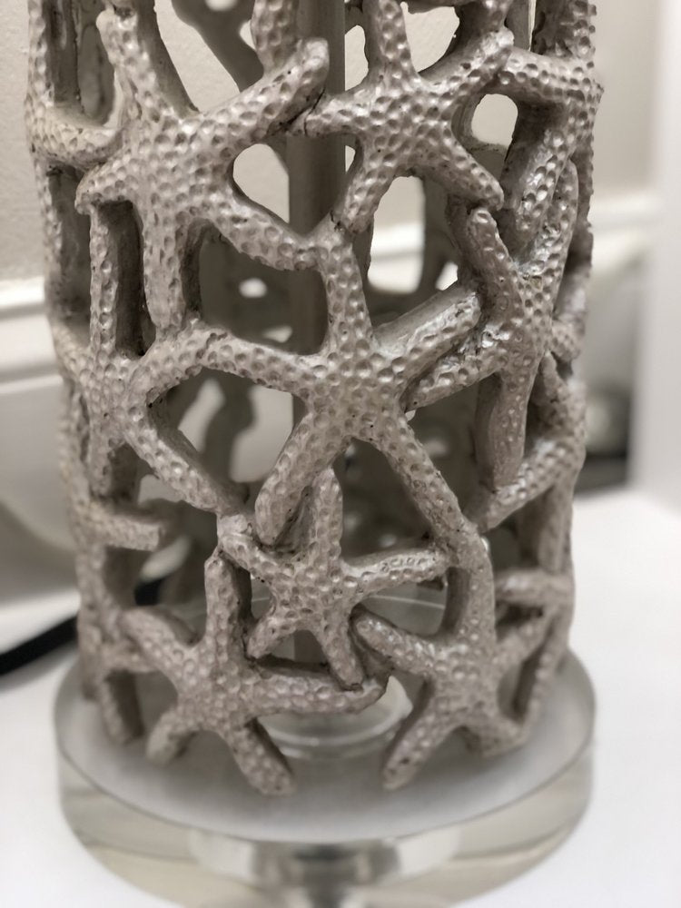 Set of Two 30" Silver Coastal Starfish Table Lamps With Beige Drum Shades