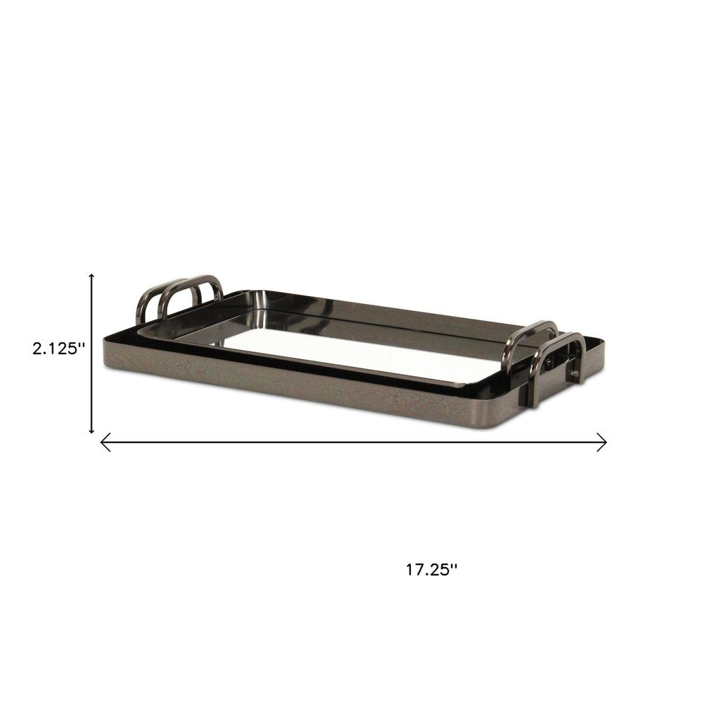 Set of Two Pewter Aluminum And Mirrored Glass Handmade Serving Trays