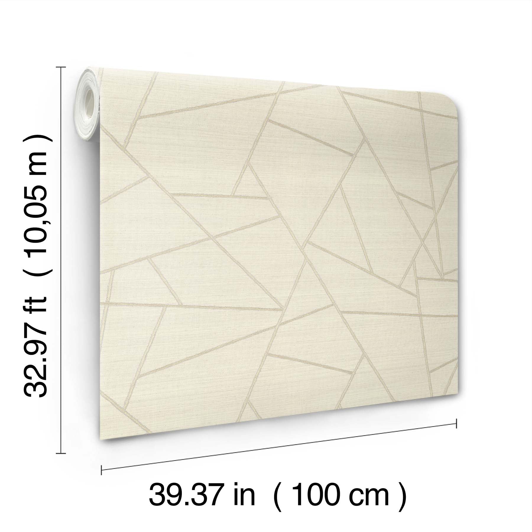 Use:Broad linear stitches of faux metallic threads build Lisle's contemporary pattern of triangles and shapes against a rustic backdrop with touches of shimmer, featured in ivory with light gold metallic. Unpasted vinyl material; 25.3-in repeat, straight match; Scrubbable and strippable; 39.4-in by 33-ft long roll; Covers about 108 square feet