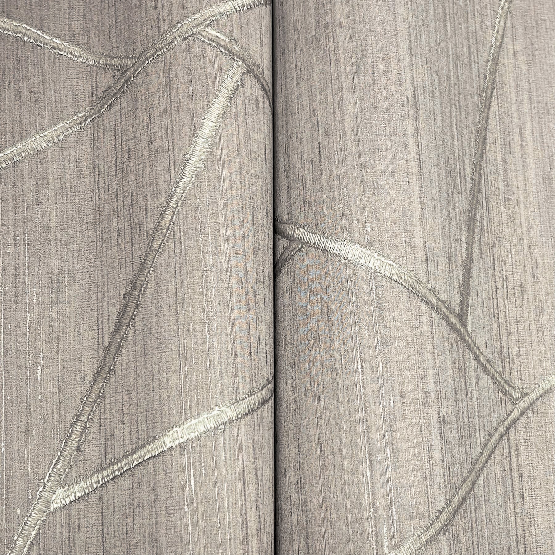 Use:Broad linear stitches of faux metallic threads build Lisle's contemporary pattern of triangles and shapes against a rustic backdrop with touches of shimmer, featuring smoky taupe with pewter metallic. Unpasted vinyl material; 25.3-in repeat, straight match; Scrubbable and strippable; 39.4-in by 33-ft long roll; Covers about 108 square feet