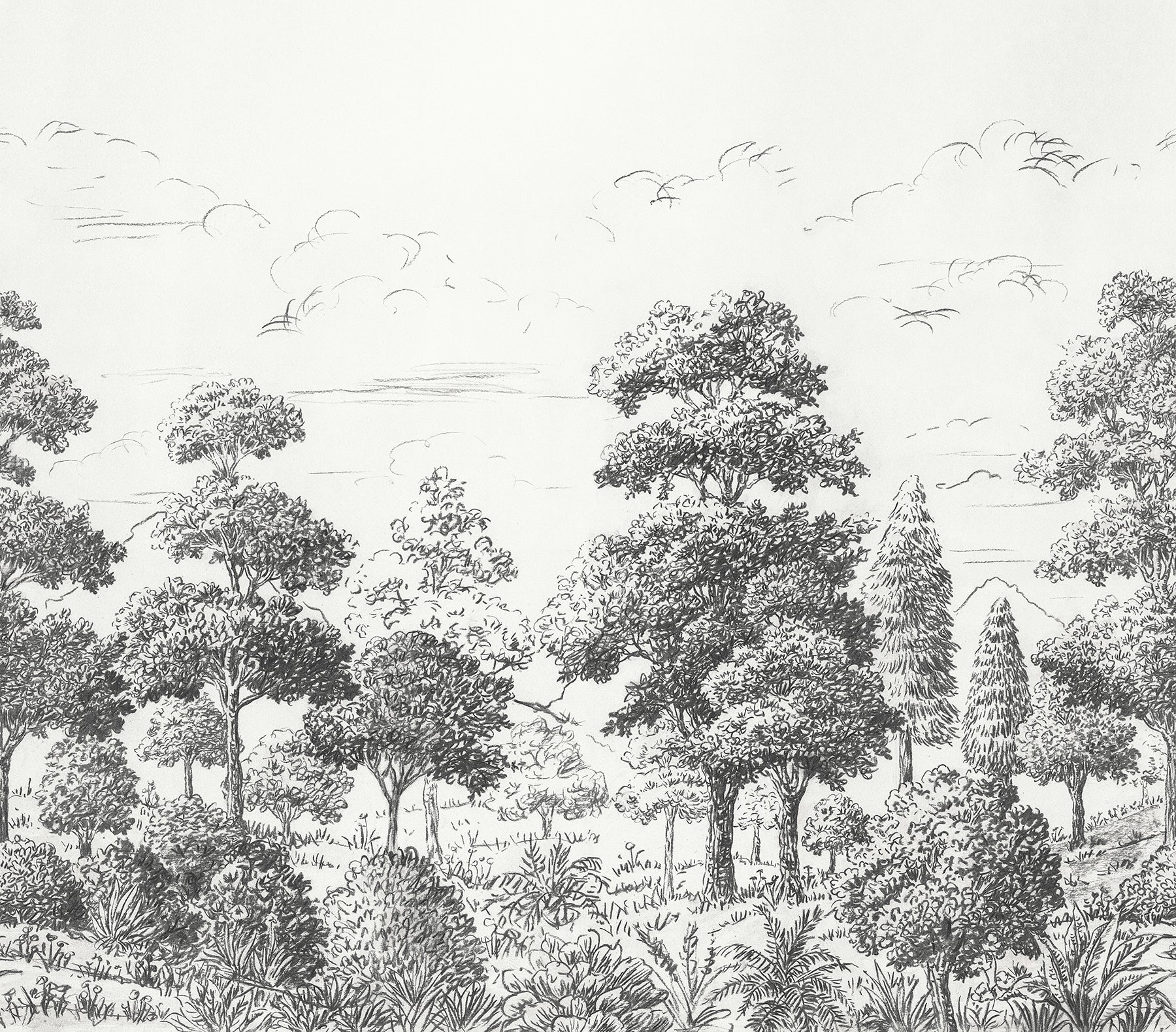 Use:Create a modern, nature-inspired focal point with this self adhesive wallpaper mural from Scott Living. A grove of black and grey trees stands out against a clean white backdrop, ideal for use as a standalone mural or repeated for a continuous forested look. Sylva Black Peel and Stick Mural contains 6 pieces on 6 sheets that measure 20.5 x 108 inches. Black and white tree peel and stick wall mural designed for Scott Living; Measures 10-ft 3-in wide by 9-ft tall when assembled; Comes in 6 sheets; Peel and stick to apply, pull up to remove; Safe for walls, leaves no sticky residue behind; Sticks to any smooth, flat surface; This product should NOT be applied to textured walls-smooth clean, dry, painted surface only (no Non-Stick paint or soap residue); ; .