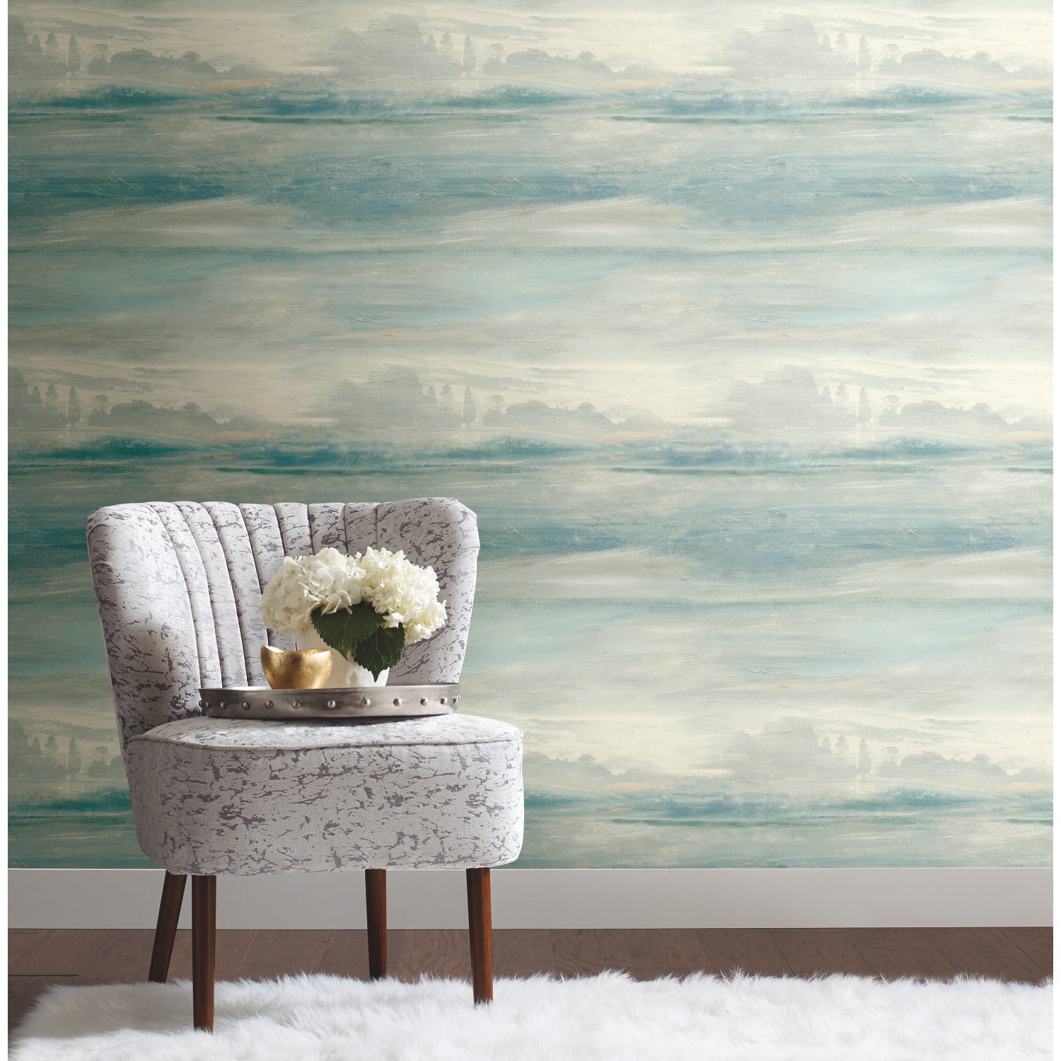 Use:A gentle wash of aqua, golden brown, olive, and grey watercolors create the drifting haze of?¨Soothing Mists Scenic's?¨cloudy dawn.?¨ This Soothing Mists Scenic Wallpaper measures approximately 27 inches wide by 27 feet long, measuring approximately 60.8 square feet per roll. Organic simplicity and lustrous adornment for the modern home.