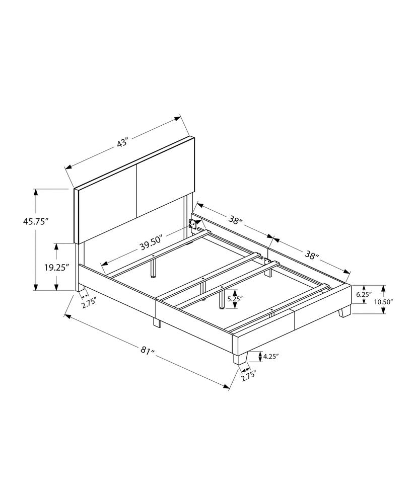 Solid Wood Twin Gray Upholstered Faux Leather Bed