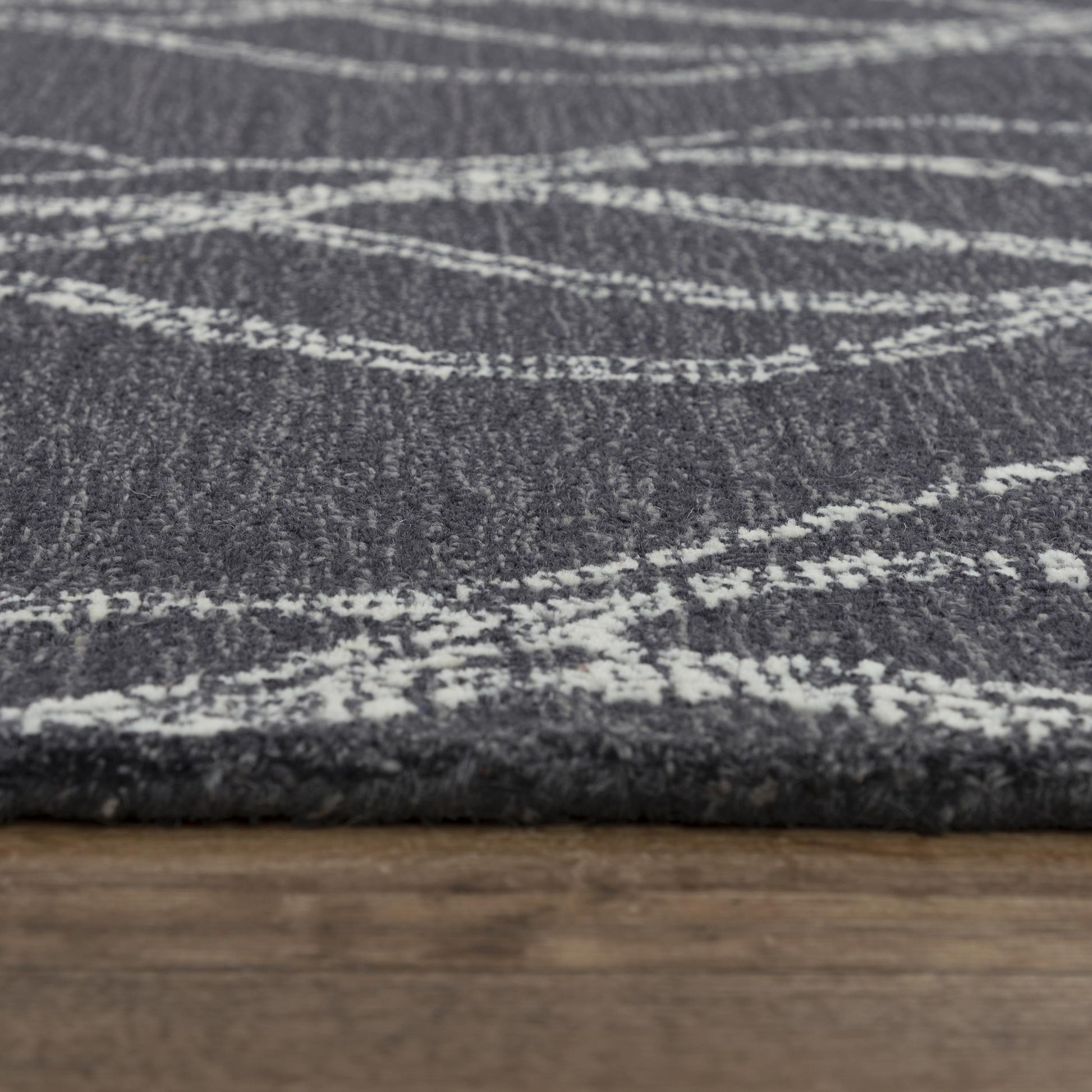 About Us:Ribbons of neutral ivory cascade gently down the charcoal background of this Rizzy Home Taylor Rug. Our unique design will have a calming effect as you follow the lines across the length of the piece. This rug is made of 100-percent wool that is densely hand-tufted and cut into a plush pile -- soft and warm underfoot. .Ribbons of neutral ivory cascade gently down the charcoal background of this Rizzy Home Taylor Rug. Our unique design will have a calming effect as you follow the lines across the length of the piece. This rug is made of 100-percent wool that is densely hand-tufted and cut into a plush pile -- soft and warm underfoot. .Monitor calibration may cause colors to vary slightly. Patterns may vary according to shape and size selected. Measurements are accurate, but slight size variations may occur due to cutting and sewing. A non-skid rug pad is recommended to extend the life of your rug, while also protecting the floor itself. .High-quality craftmanship for long-lasting performance.Plush, Comfortable Pile.Plush, Comfortable Pile.Durable Cotton Canvas Backing.Versatile for High-Traffic Areas