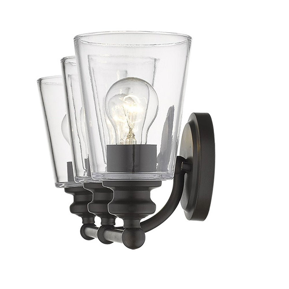 Three Light Antique Bronze Glass Shade Wall Sconce