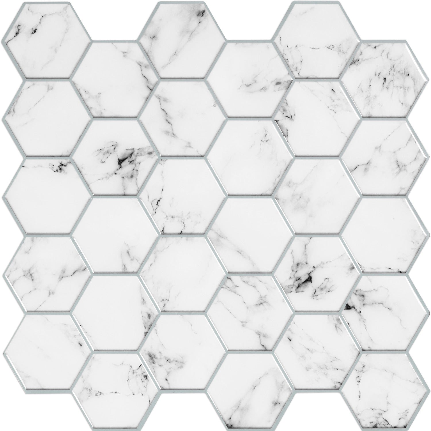 Use:Decorate your bathroom or kitchen with Carrara Marble Hexagon Tile Peel and Stick Backsplash. Each StickTILE? pack includes four tiles. To install, remove the backing from each tile and apply to any smooth, flat surface. No grout, cement or wet saw is needed. Customize tiles to fit your space by easily cutting with a utility knife or scissors. Cree your own dream kitchen or bathroom backsplash. Experience RoomMates StickTILES? today!