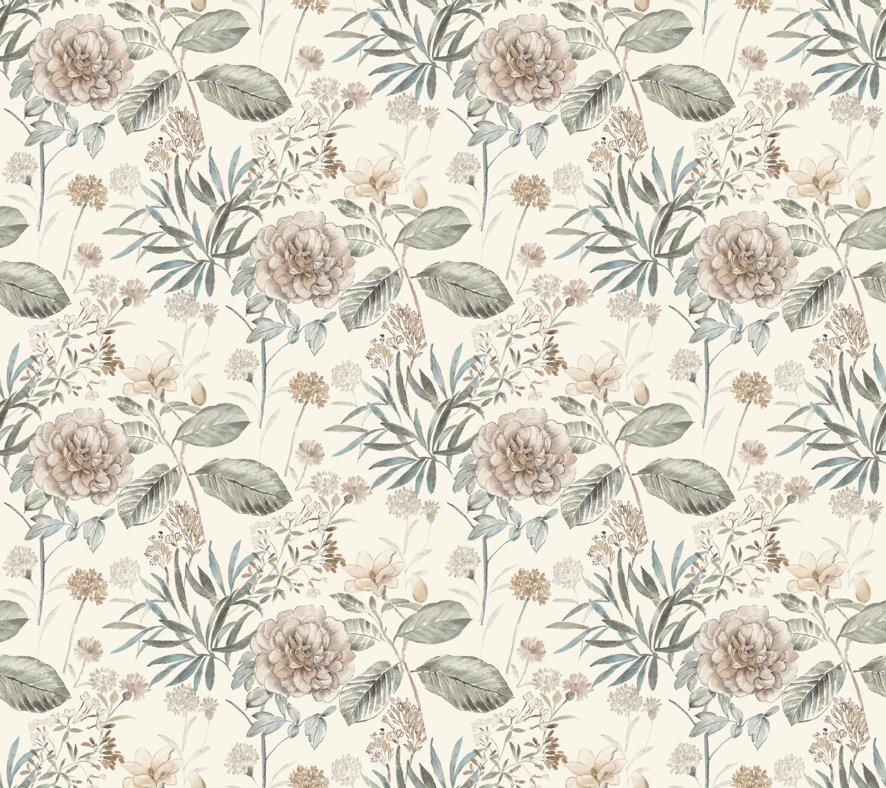 Pattern: TL1918 / Midsummer Floral Beige and Green Wallpaper