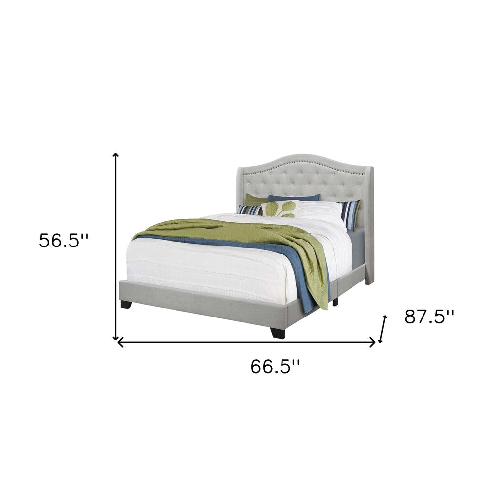 Light Gray and Gray Wood Tufted Upholstered Queen Bed Frame with Nailhead Trim