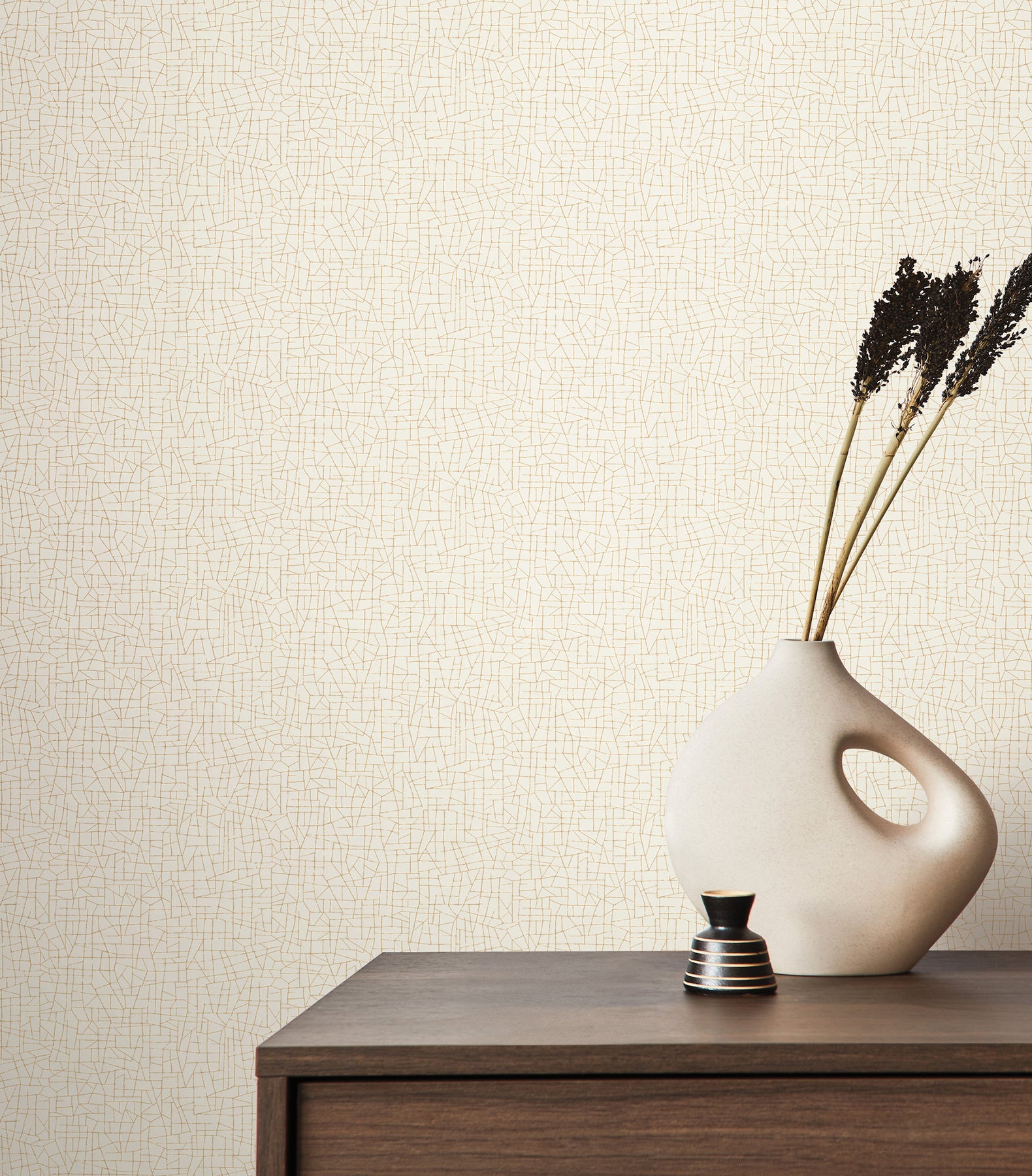 Use:Exchange's small, unique, fractured lines feel like an artisanal installation rendered in burnished metallic against a textural plaster ground, shown in off-white with burnished metallic.. This Exchange Wallpaper measures approximately 27 inches wide by 27 feet long, measuring approximately 60.8 square feet per roll. The glamour of metropolitan life inspires this sophisticated collection of classic, geometric, and textural High Performance Type II products styled for residential and boutique commercial spaces.