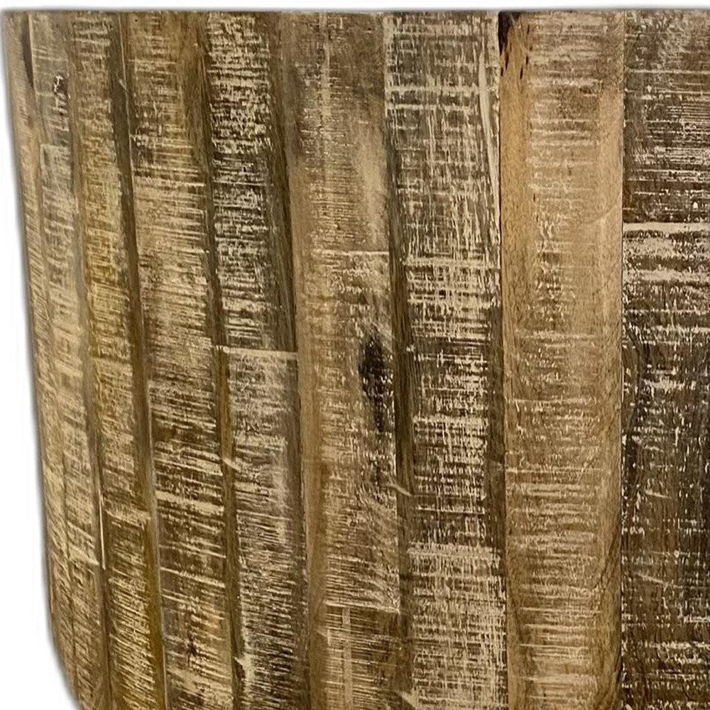 32" Brown Solid Wood Round Distressed Drum Coffee Table