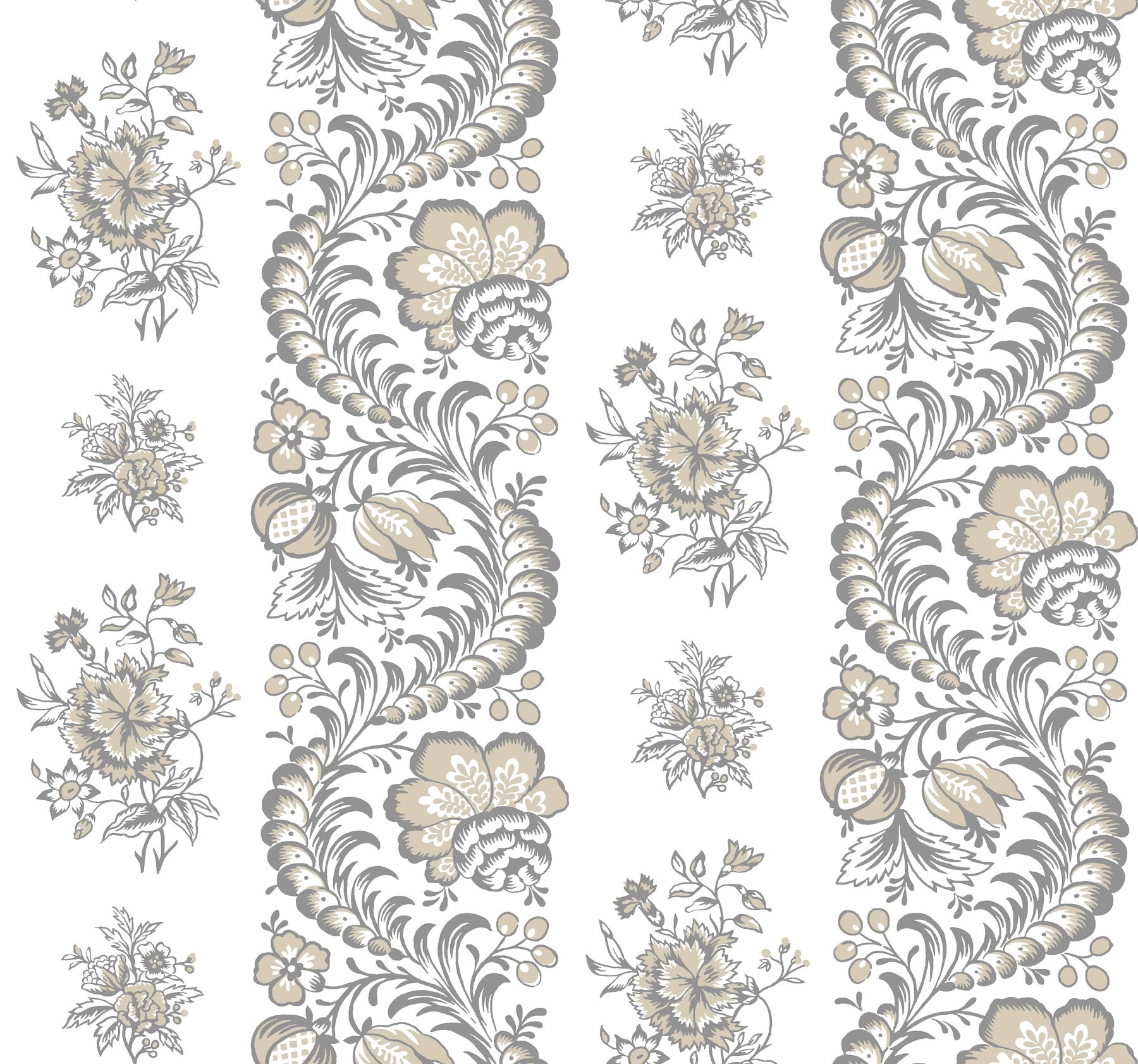 Use:Pillars composed of winding, floral vines alternate with columns of dainty floral groupings in pattern Beaumont. Seen here in a palette of charcoal and taupe against a white backdrop imbued with linen detailing. Beaumont is an unpasted, non woven wallpaper measuring 27 inches wide by 27 feet long, covering approximately 60.8 square feet per roll. Unpasted non woven material; 25.3-in repeat, straight match; Washable and strippable; 27-in by 27-ft long roll; Covers about 60.8 square feet
