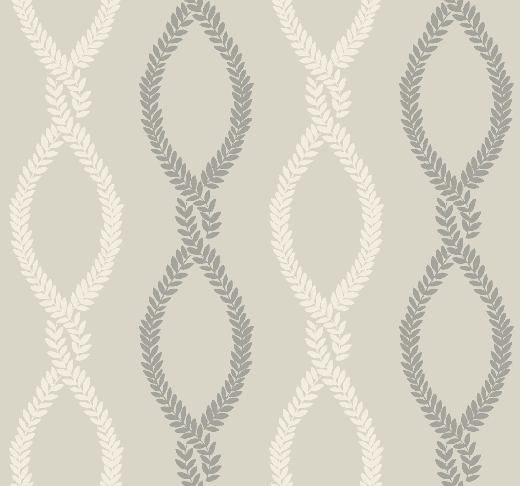 Use:Pairs of leafy vines twist and twine together to form a looping chain in pattern Laureate. Featured here in a palette of white, charcoal, and pale grey. Laureate is an unpasted, non woven wallpaper measuring 27 inches wide by 27 feet long, covering approximately 60.8 square feet per roll. Unpasted non woven material; 25.3-in repeat, straight match; Washable and strippable; 27-in by 27-ft long roll; Covers about 60.8 square feet