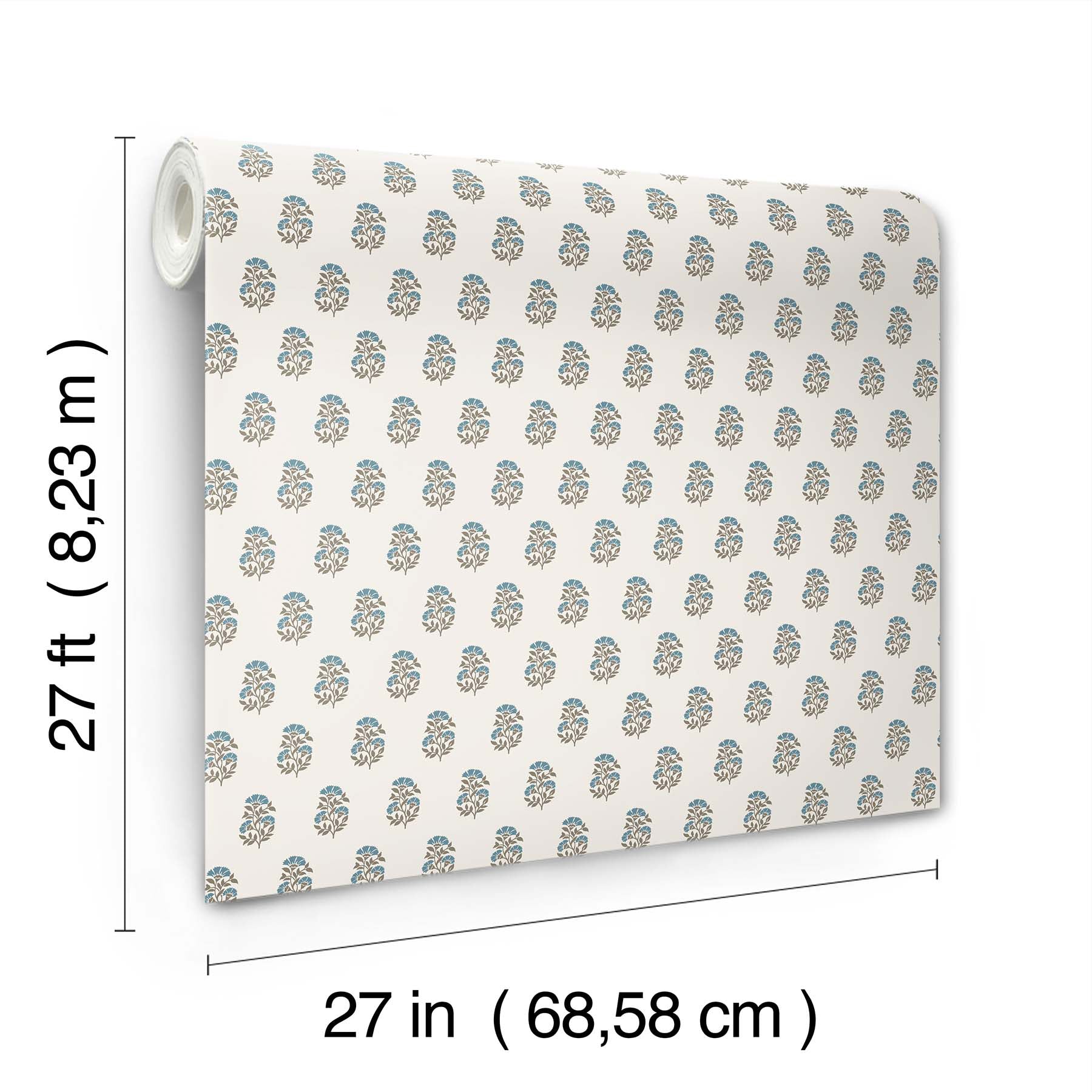 Use:Delicate fanning flowers are stamped in offset rows in pattern Sylvie. The stems are inked in a rich grey-brown with teal blooms, all offset against a crisp white backdrop. Sylvie is an unpasted, non woven wallpaper measuring 27 inches wide by 27 feet long, covering approximately 60.8 square feet per roll. Unpasted non woven material; 25.3-in repeat, straight match; Washable and strippable; 27-in by 27-ft long roll; Covers about 60.8 square feet