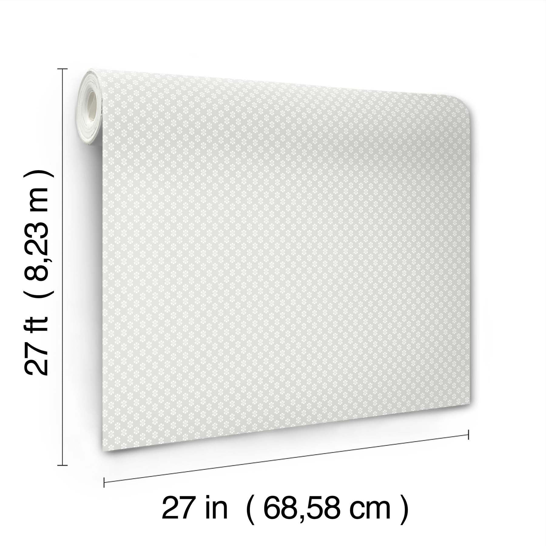 Use:Petite floral stamps form dainty yet densely-clustered offset columns in pattern Brioni. Featured here in white against pale grey. Brioni is an unpasted, non woven wallpaper measuring 27 inches wide by 27 feet long, covering approximately 60.8 square feet per roll. Unpasted non woven material; 20.5-in repeat, straight match; Washable and strippable; 27-in by 27-ft long roll; Covers about 60.8 square feet