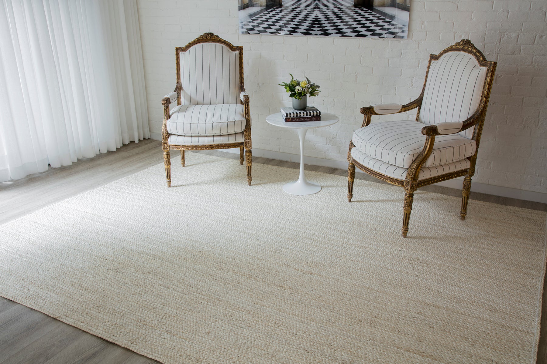 About Us: Organic materials serve as design inspiration for this decorative area rug with enduring style and strength. Natural jute fibers lend this solid area rug subtle variation, as hints of brown appear within the carpet?s braided rows. The earthy style of the elegant floorcovering exudes the ease of island life as a textural layer beneath coffee tables and couches.